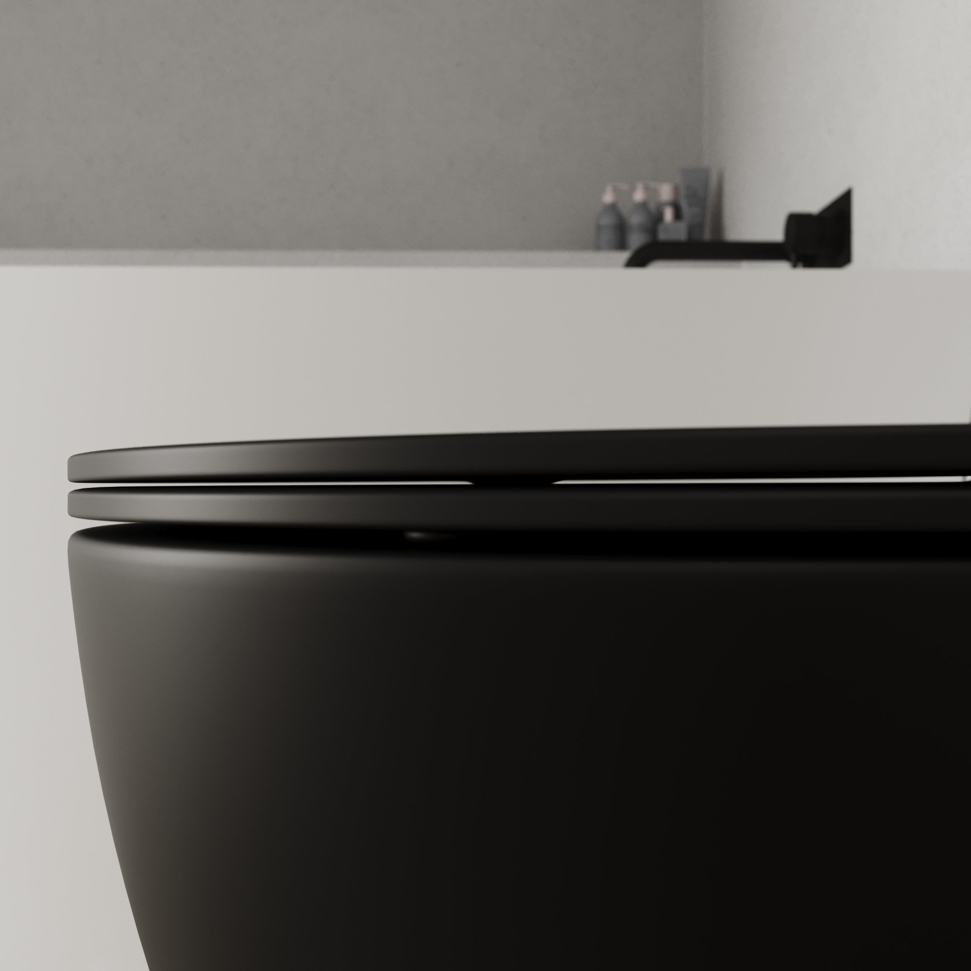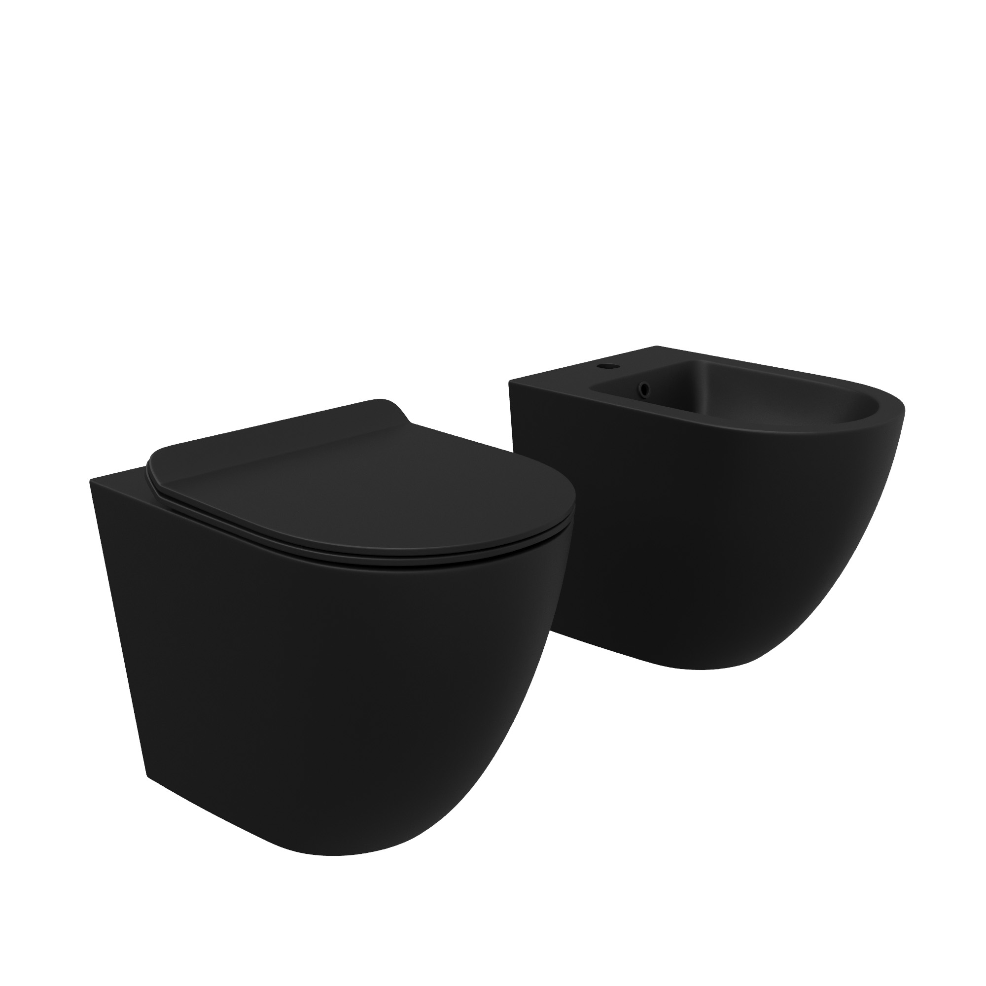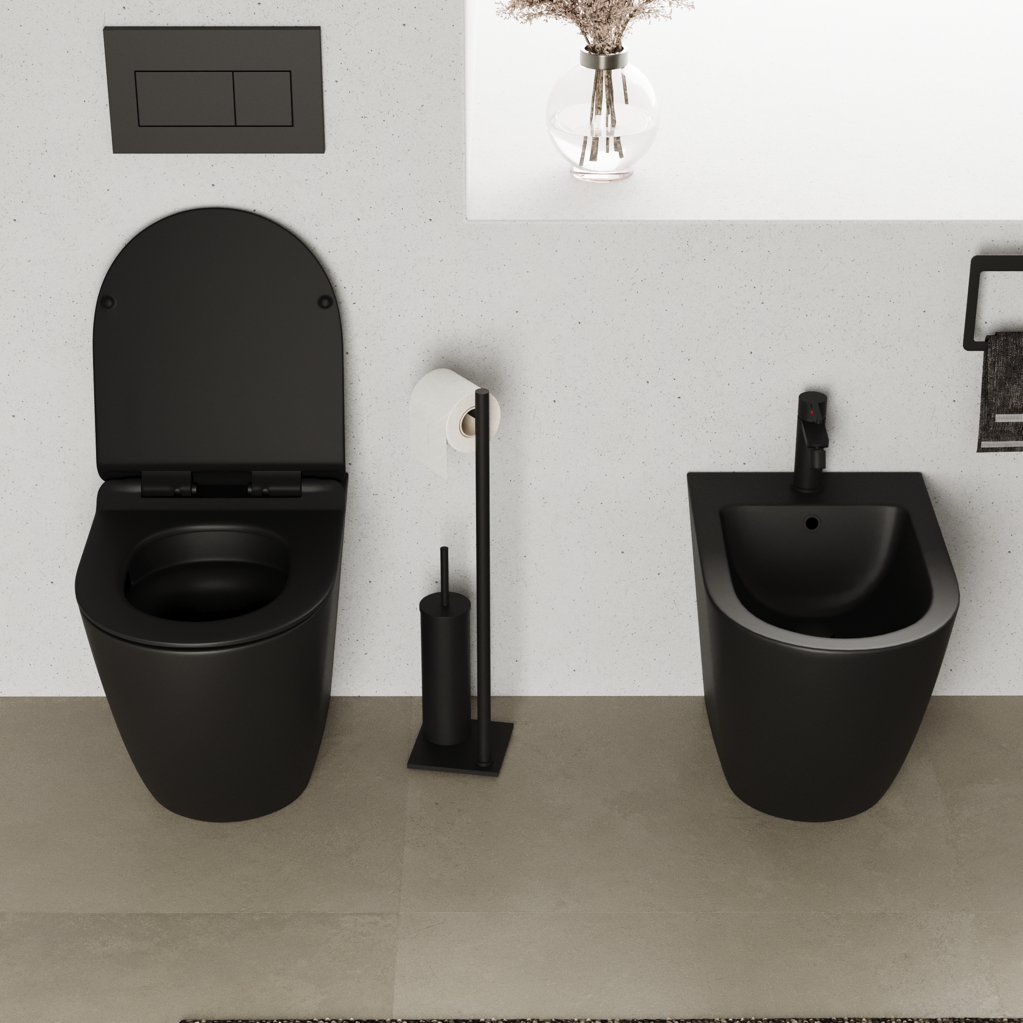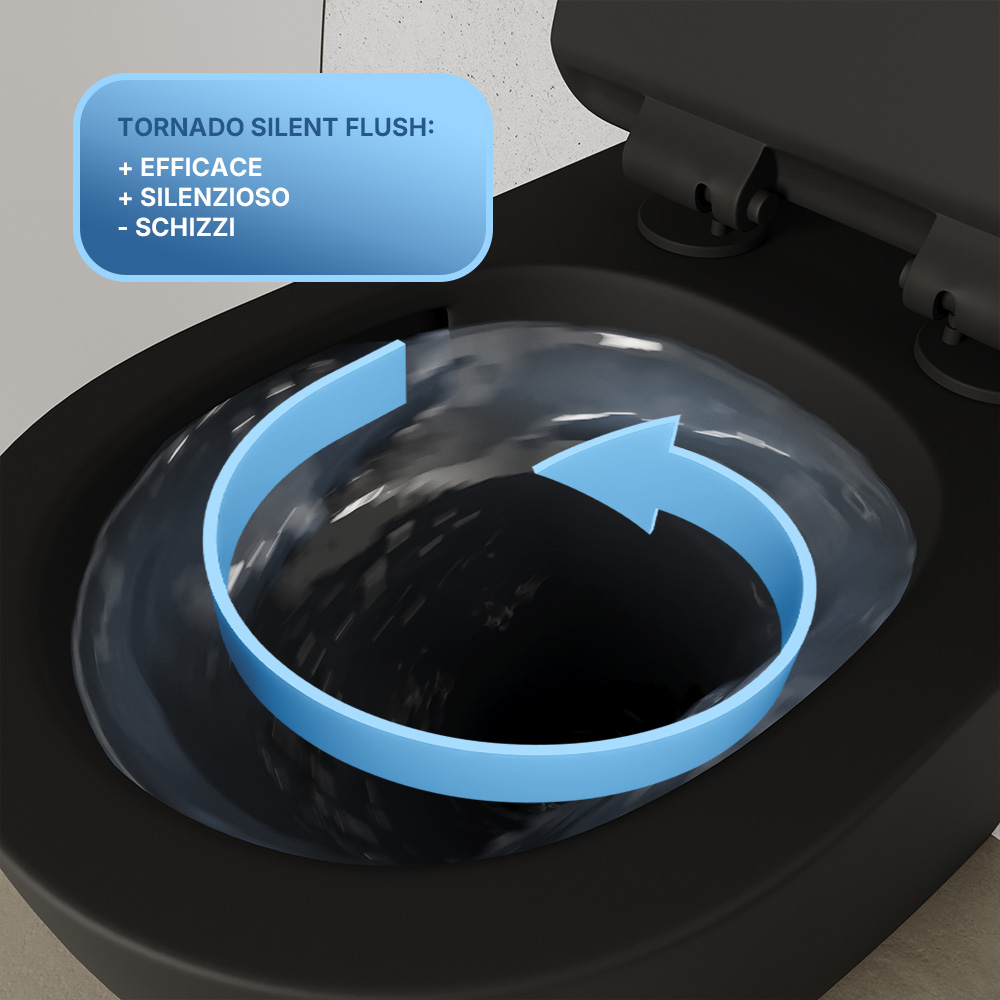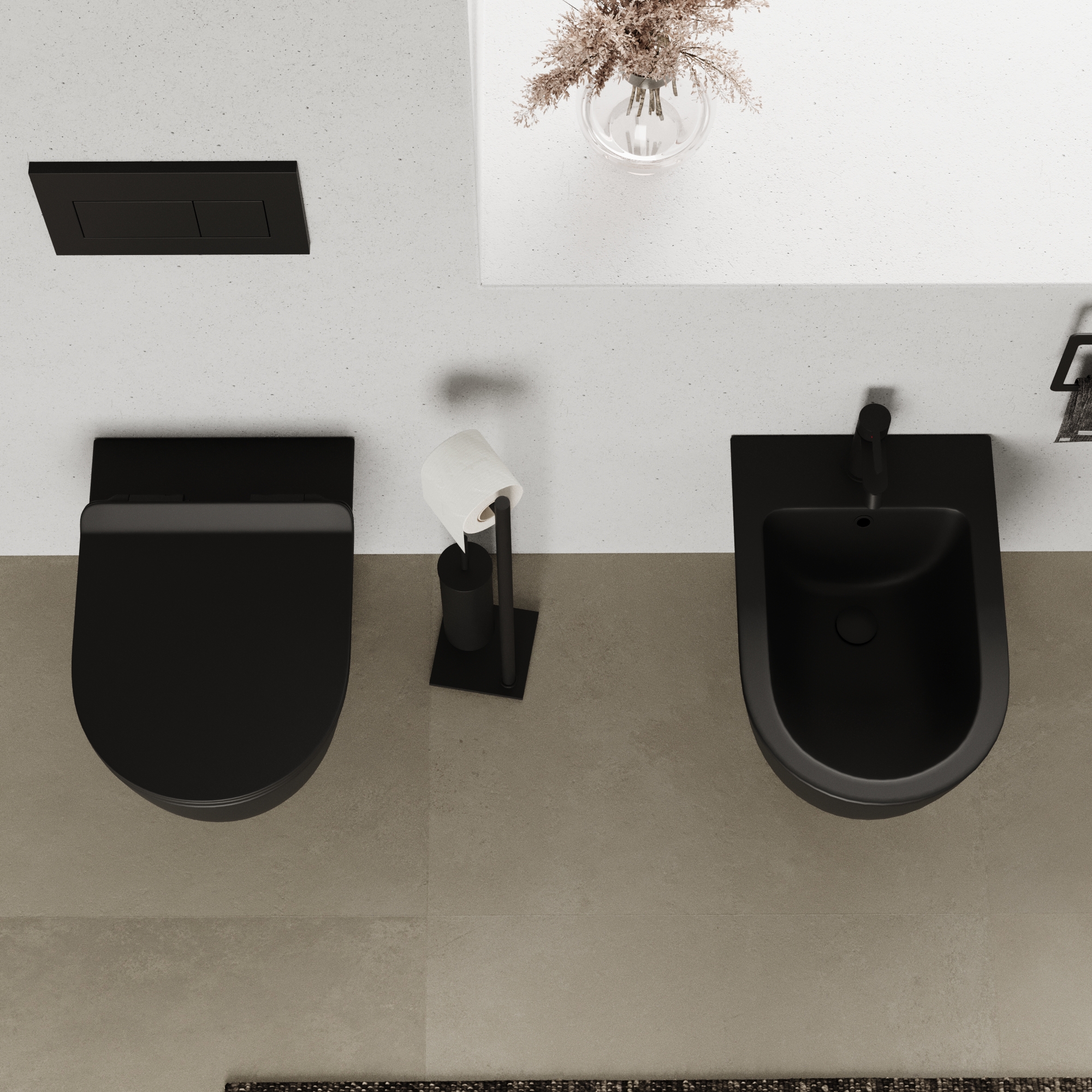 Sanitari filomuro in ceramica nero opaco vaso tornado silent flush sedile soft-close e bidet | Sydney