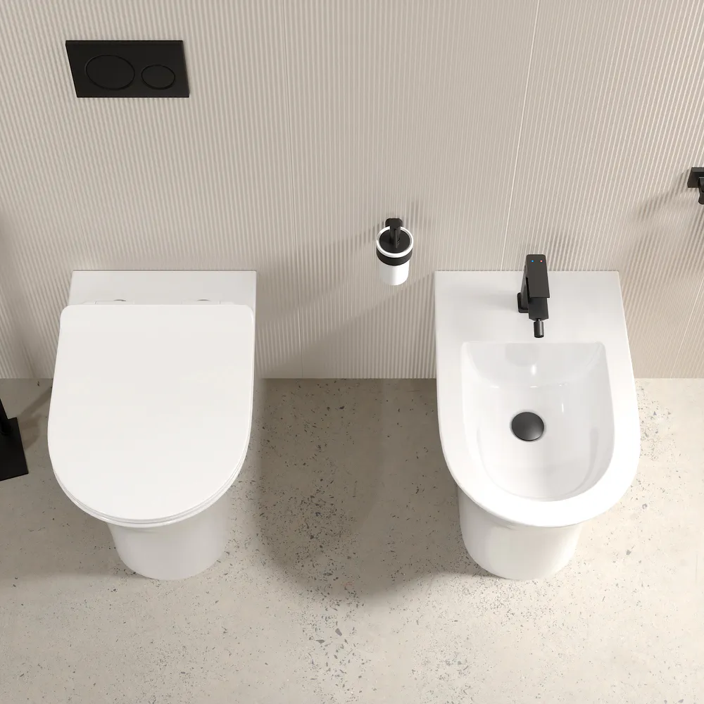 Sanitari filomuro in ceramica rimless wc e bidet | Sofia