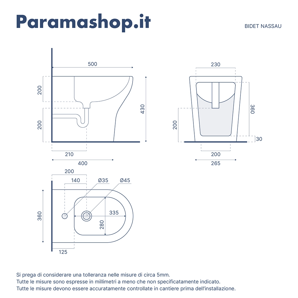 La curva tecnica ed il sifone per il bidet non sono inclusi ma possono essere acquistati separatamente nell'apposita sezione sul nostro store.