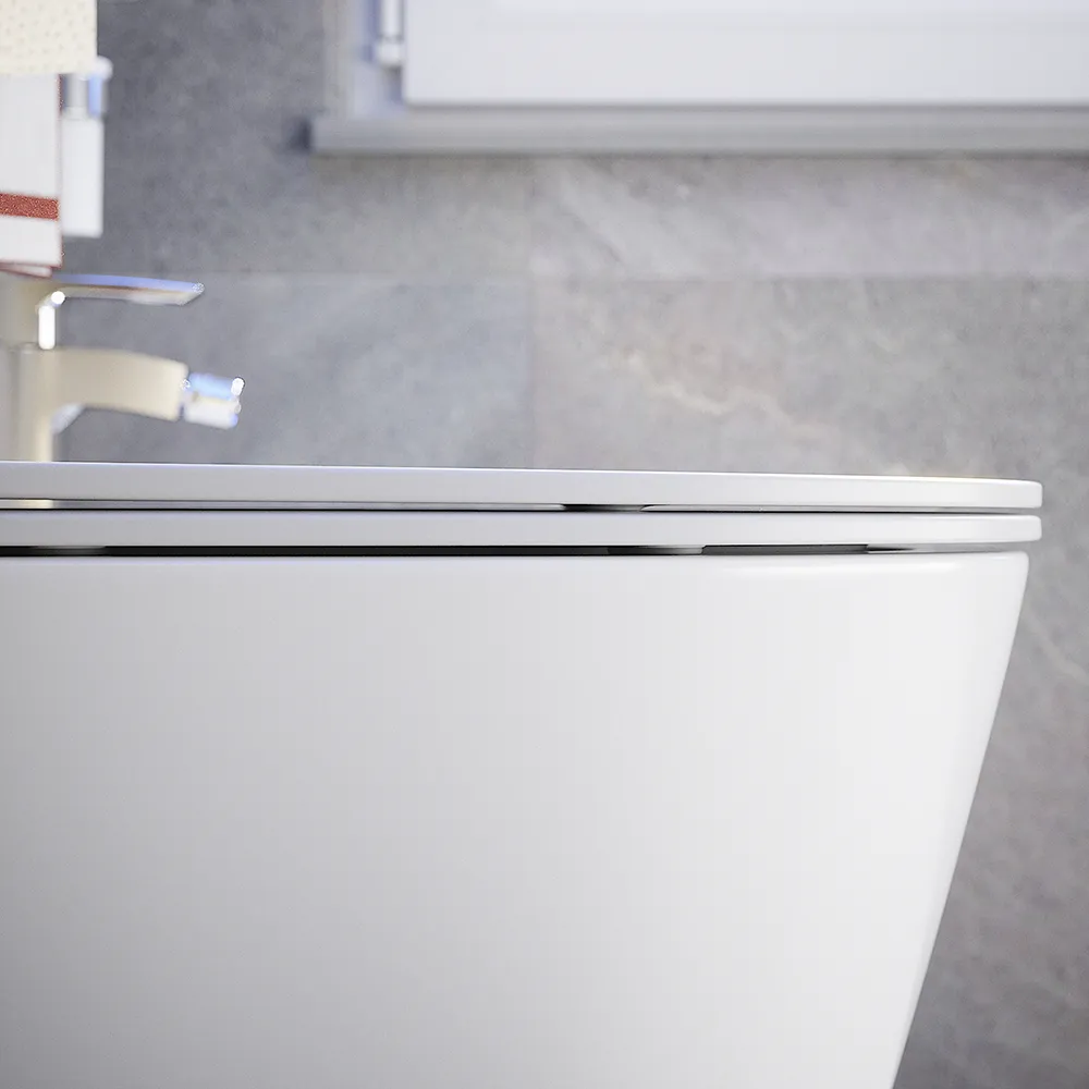 Una caratteristica molto apprezzata dagli utenti è la chiusura rallentata del sedile possibile grazie alle speciali cerniere del copri-wc. Il sedile non si chiuderà più bruscamente ma sarà accompagnato dolcemente dalle cerniere stesse fino alla complesa chiusura. Potrete così dire addio ai fastidiosi rumori. Il copri WC è realizzato in resina termoindurente UF (Urea-Formaldeide), un materiale noto per la sua resistenza e durevolezza. Grazie alla sua rigidità, alla resistenza ai graffi e alla facilità di pulizia, assicura igiene e un'elevata durata nel tempo.