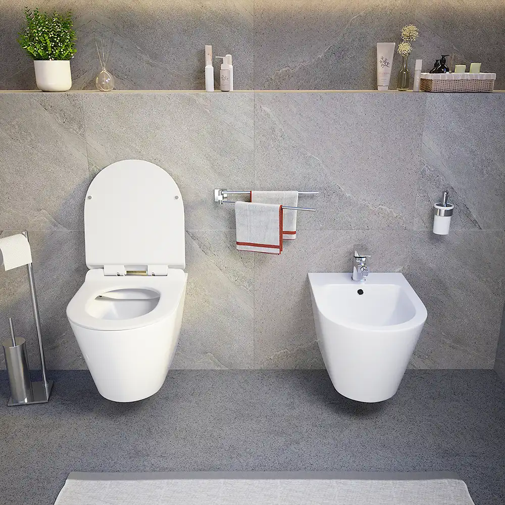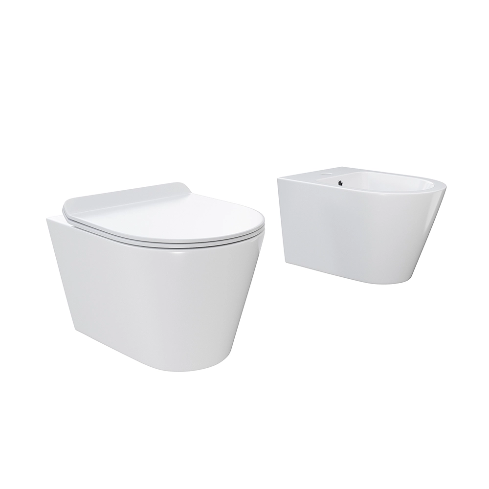 Sanitari sospesi in ceramica bianco lucido vaso rimless sedile soft-close e bidet | Barcellona