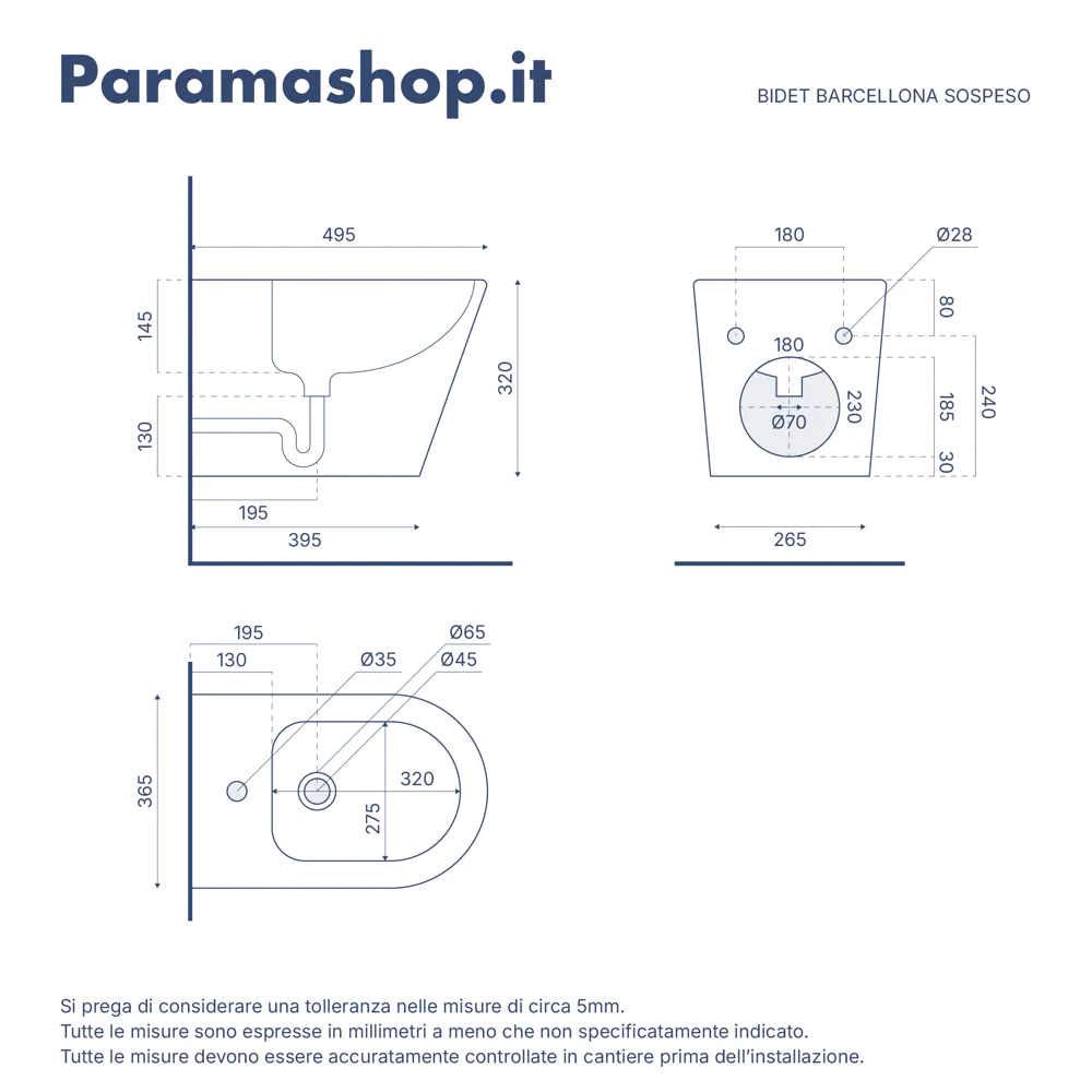 - Inclusi wc, bidet e sedile con sgancio rapido