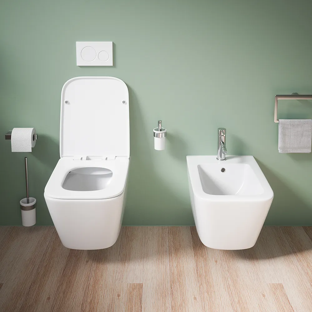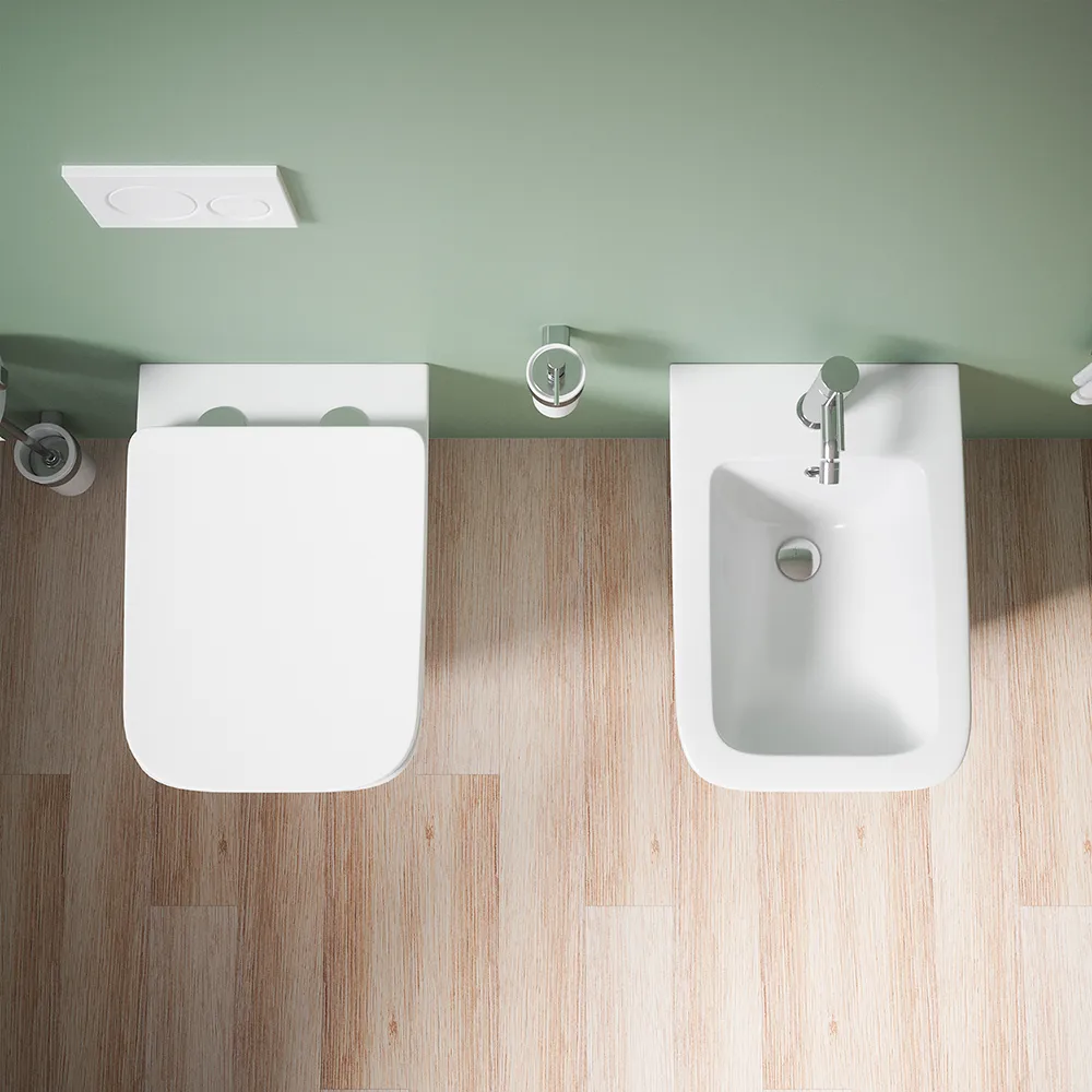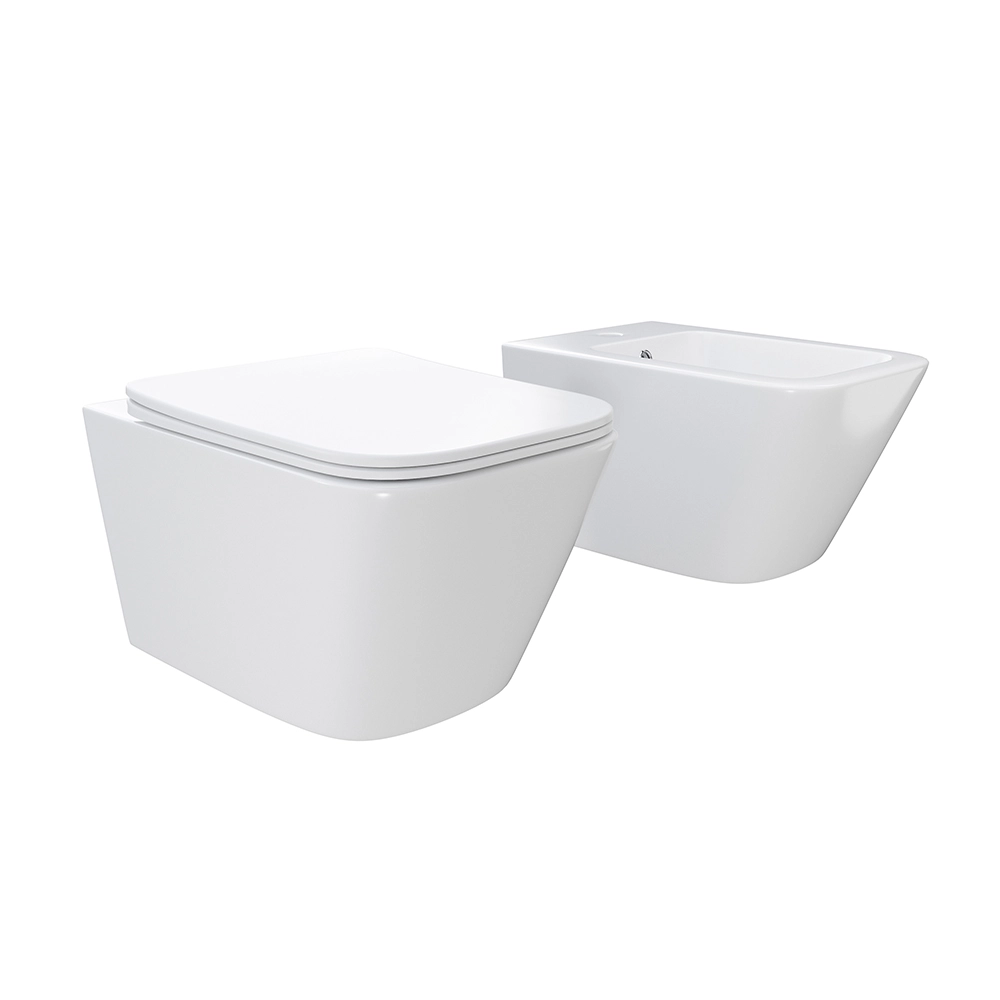 Sanitari sospesi in ceramica bianco lucido vaso rimless sedile soft-close e bidet | Kyoto