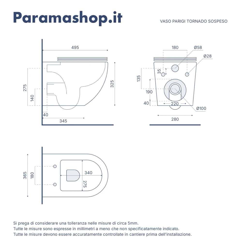 | Foro di scarico: | A parete |