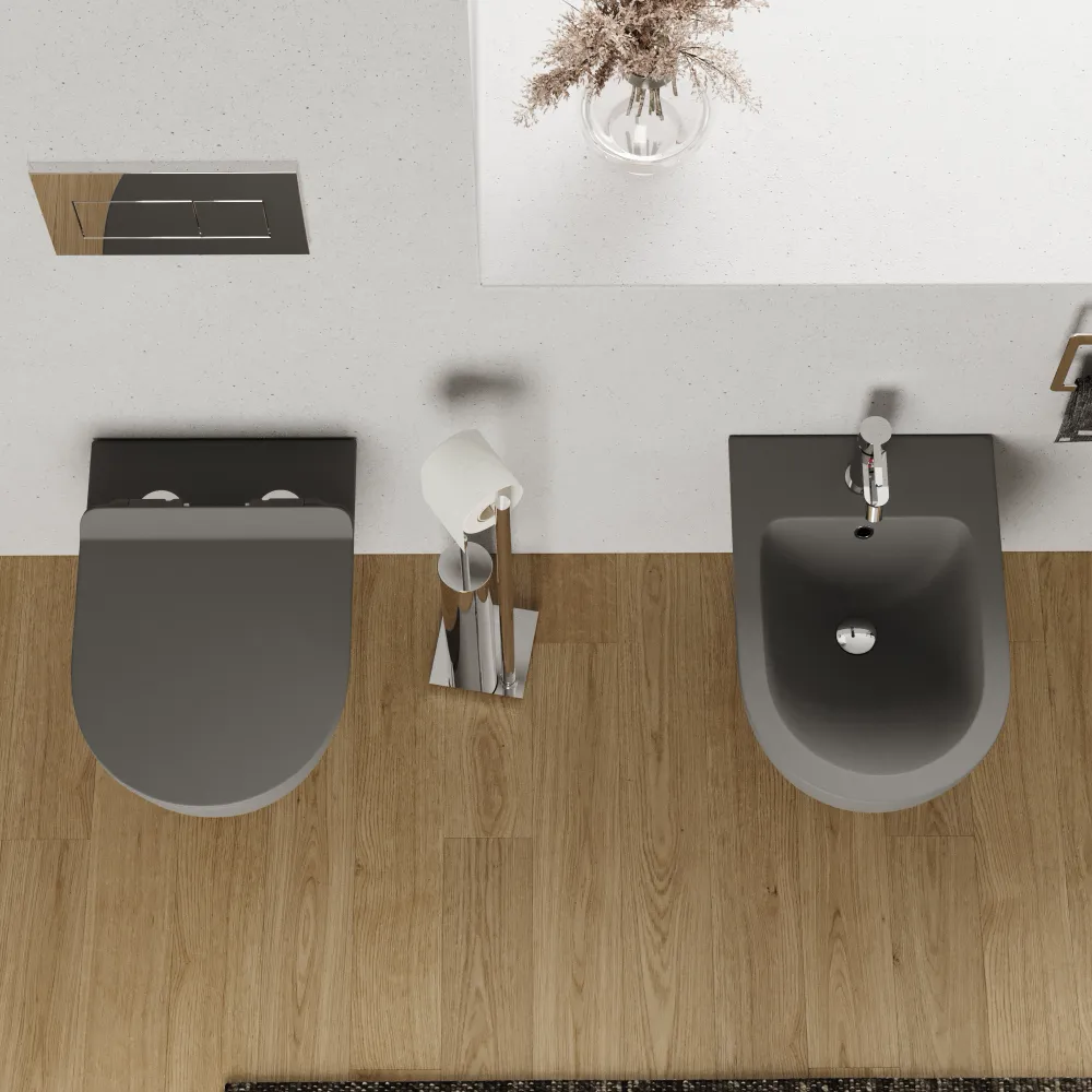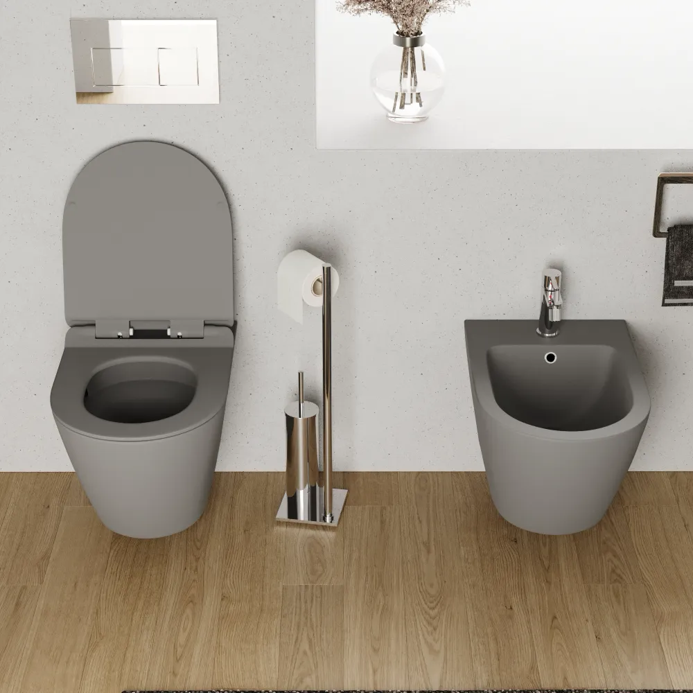 Sanitari sospesi in ceramica grigio opaco vaso tornado silent flush sedile soft-close e bidet | Sydney