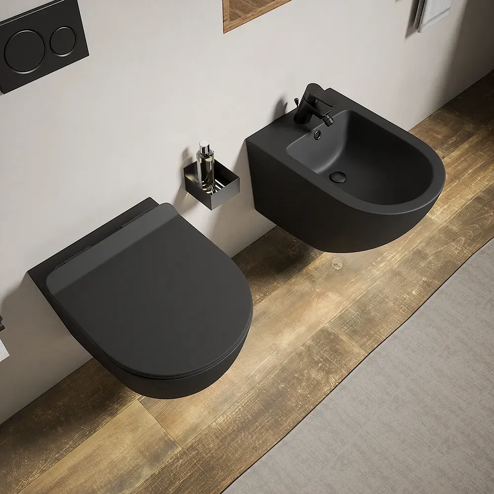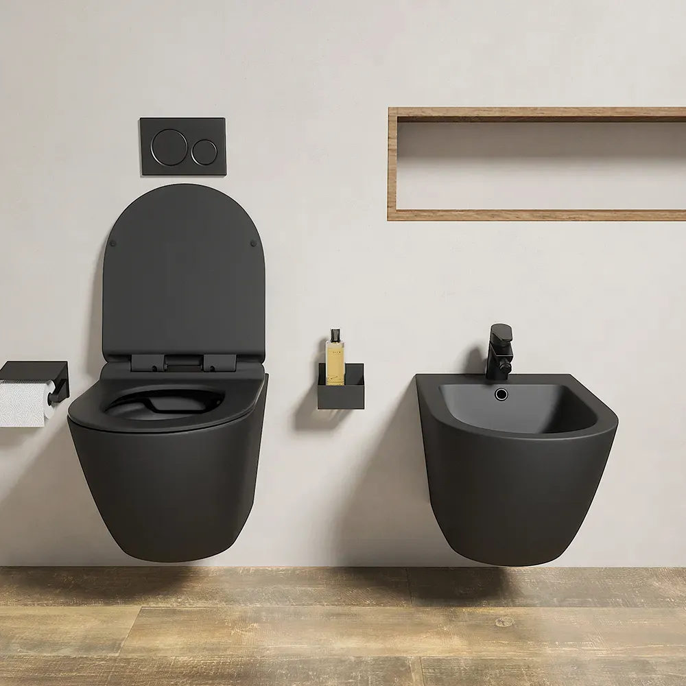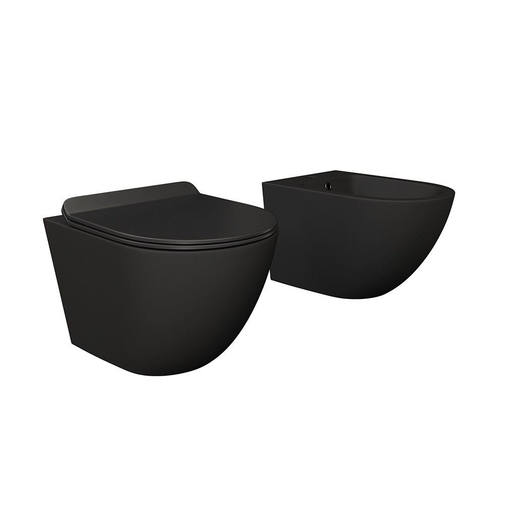 Sanitari sospesi in ceramica nero opaco rimless sedile con chiusura rallentata | Parigi