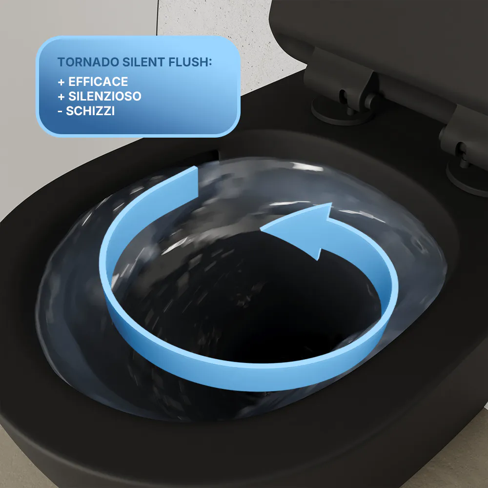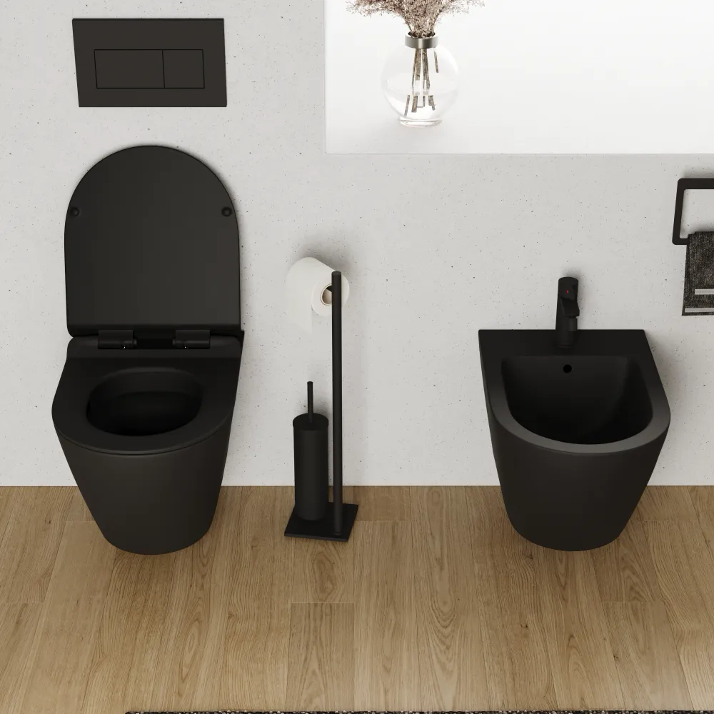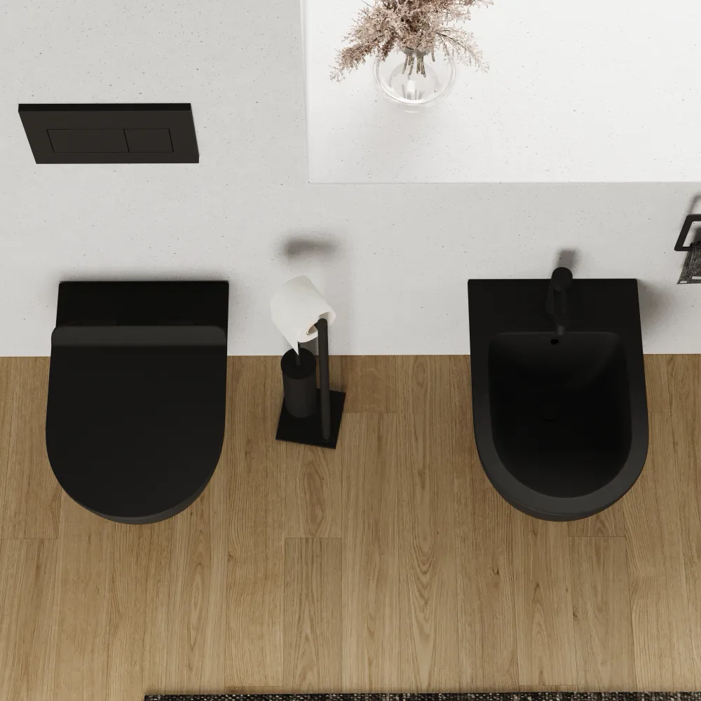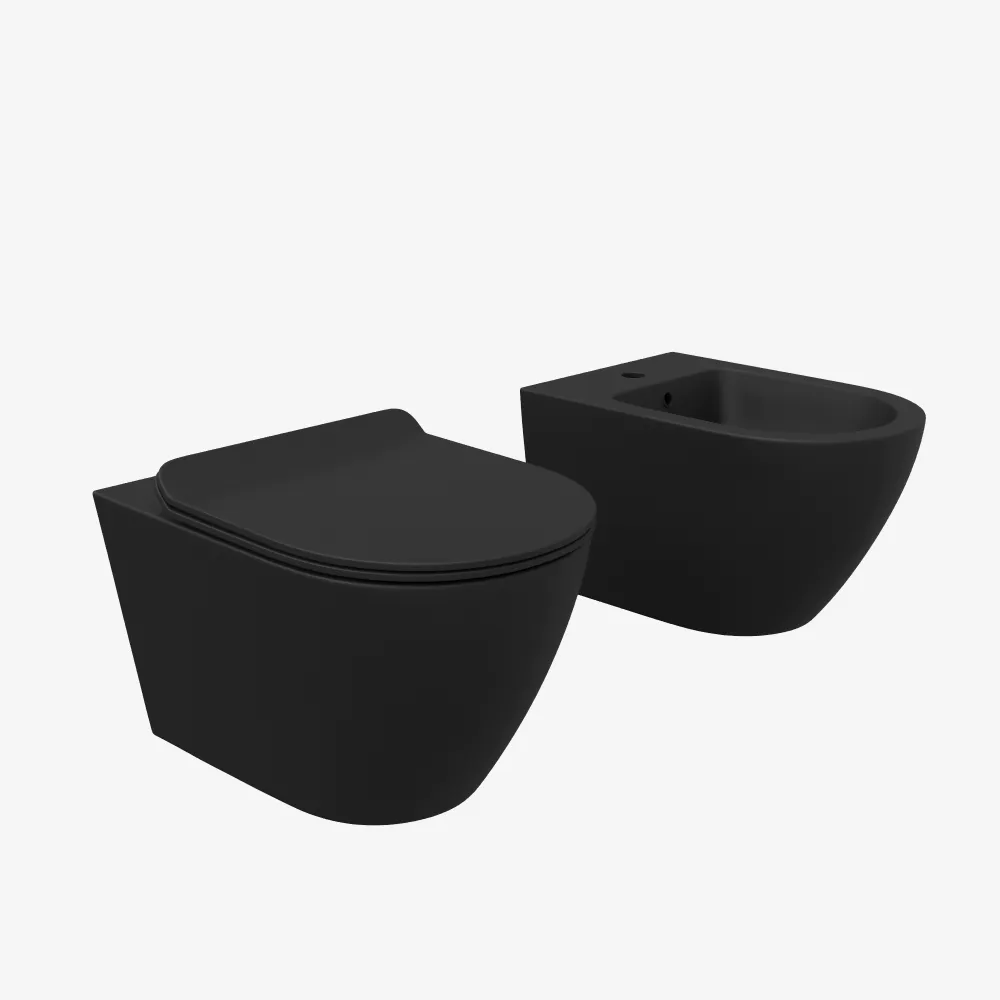 Sanitari sospesi in ceramica nero opaco vaso tornado silent flush sedile soft-close e bidet | Sydney