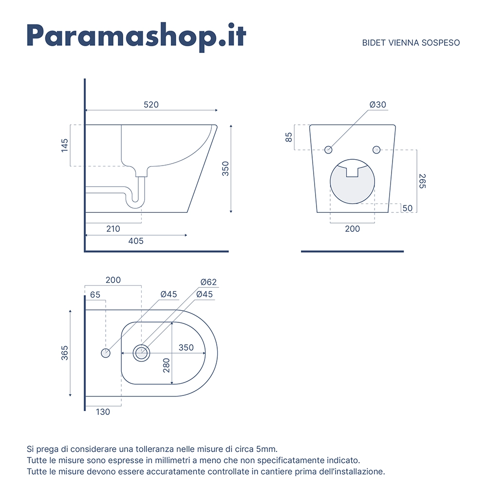 N.b.: il sifone e la piletta di scarico per il bidet non sono inclusi ma possono essere acquistati separatamente nell'apposita sezione sul nostro store.