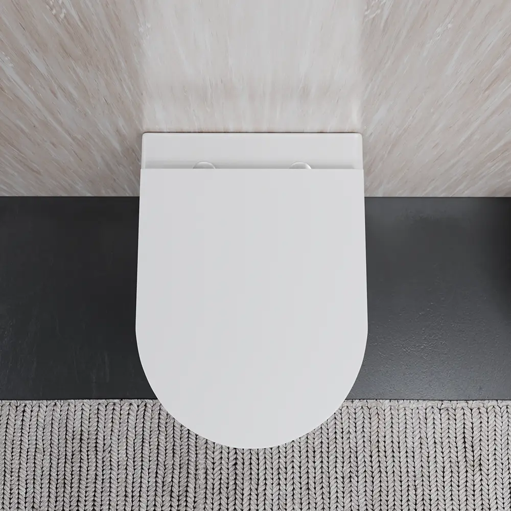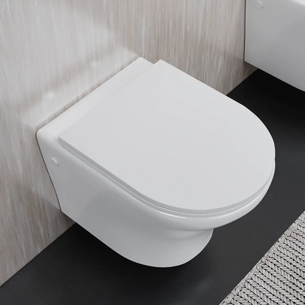Sanitari sospesi rimless in ceramica bianco lucido: vaso bidet e copriwc soft-close | Nassau