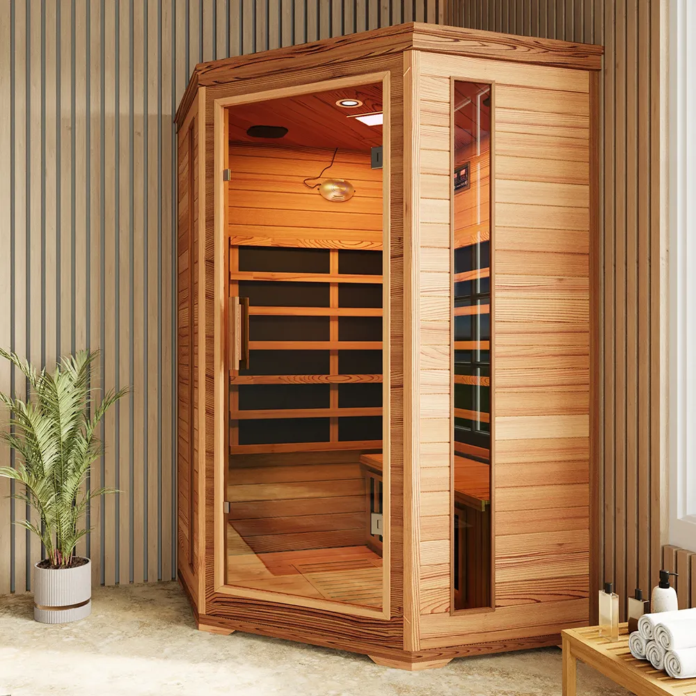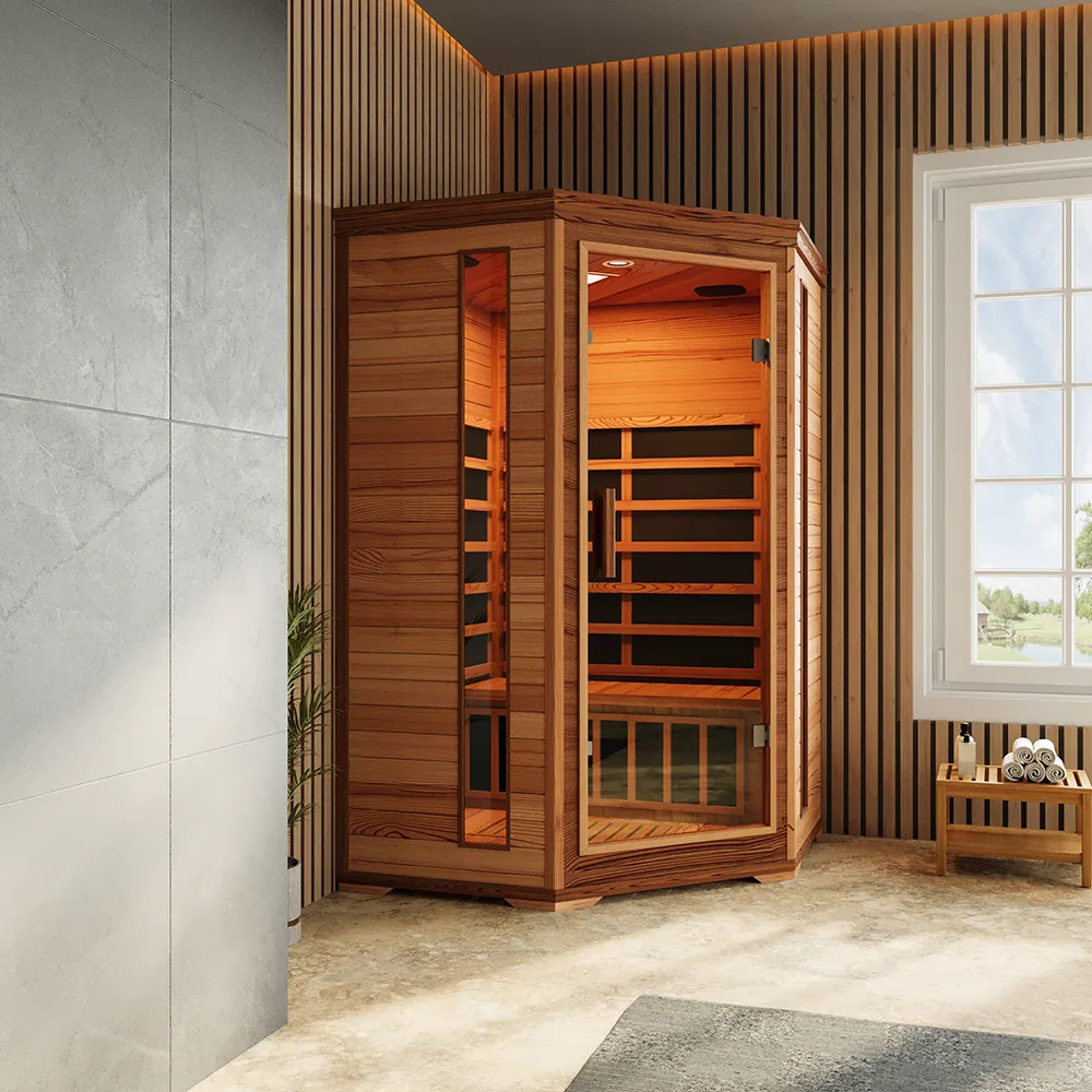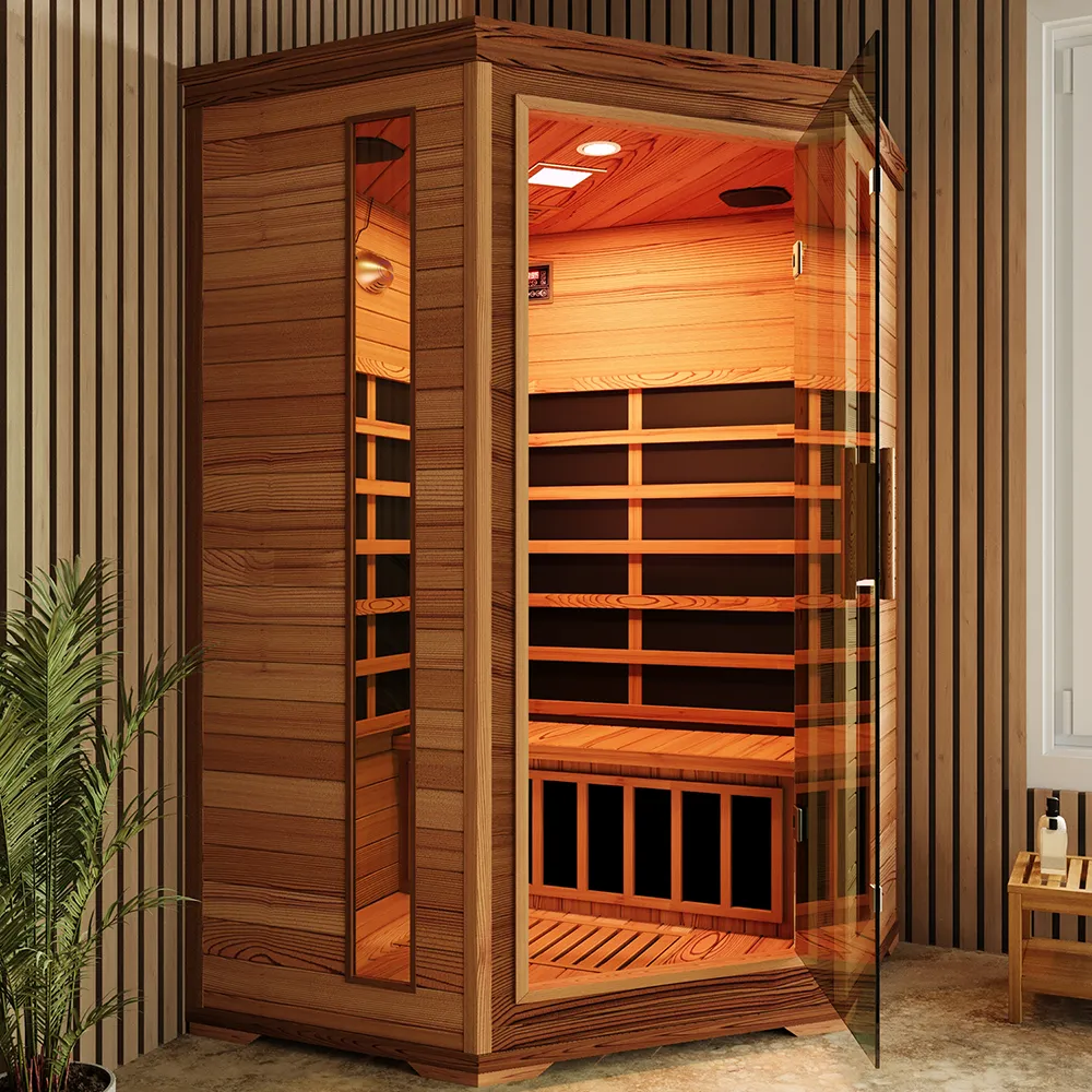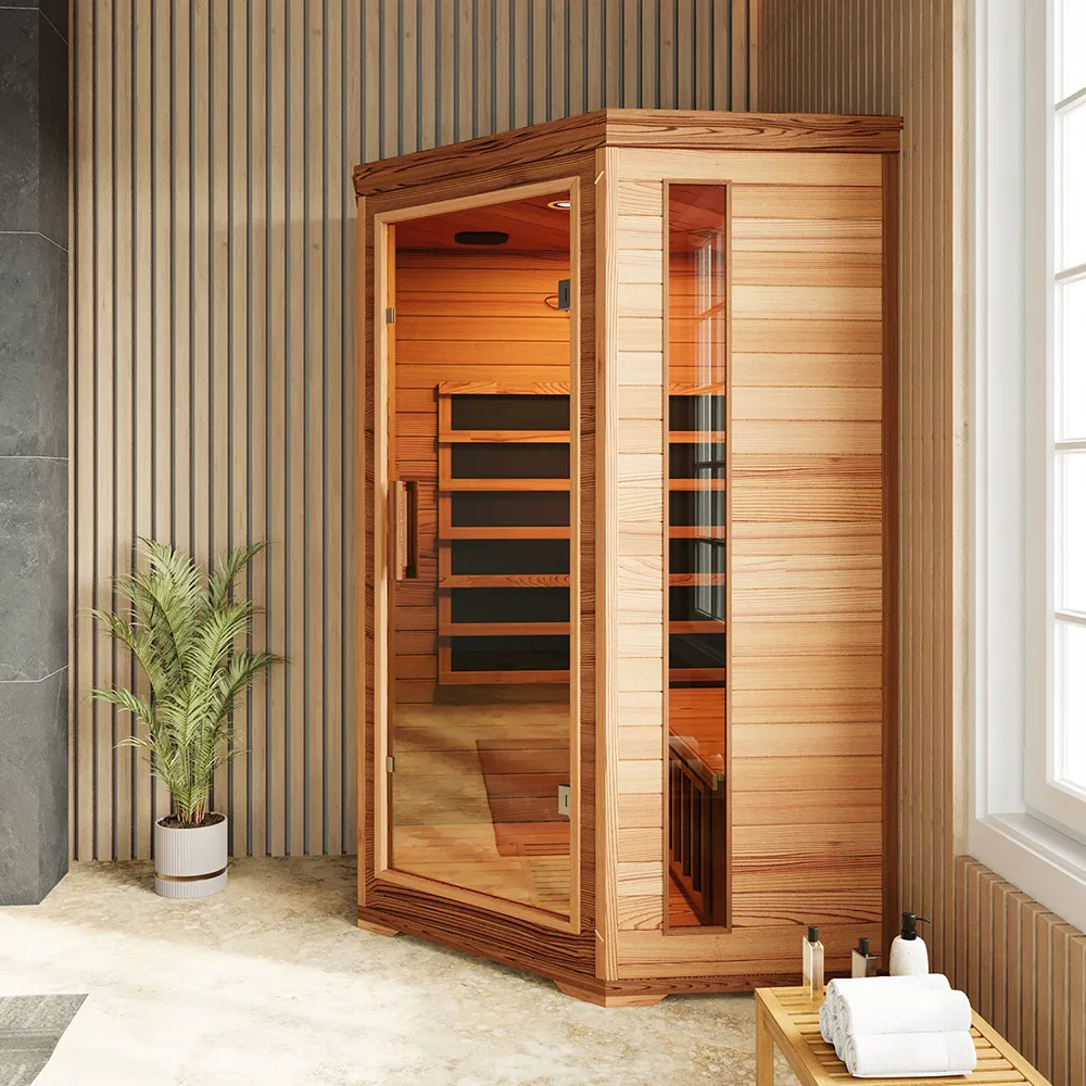 Esplora il mondo del benessere con la nostra Sauna ad infrarossi Turku, un gioiello di relax in legno di cedro. Con una superficie di 123x123 cm e un'altezza di 198 cm, questa sauna offre un'esperienza di lusso personalizzata nel comfort della tua casa.