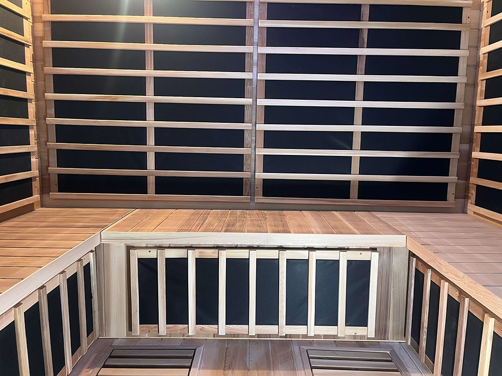 Il comfort è al centro dell'esperienza con lo schienale regolabile, progettato per adattarsi alle tue preferenze di relax. Le luci esterne creano un'atmosfera accogliente, mentre le luci interne con cromoterapia a 7 tonalità trasformano la tua sauna in un santuario di tranquillità.