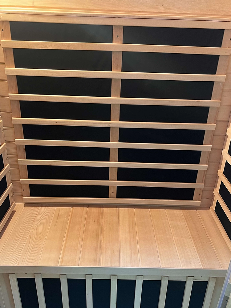 Il comfort è al centro dell'esperienza con lo schienale regolabile per adattarsi alle tue preferenze di relax. Le luci esterne aggiungono un tocco di atmosfera, mentre le luci interne con cromoterapia a 7 tonalità trasformano la sauna in un'oasi di tranquillità.