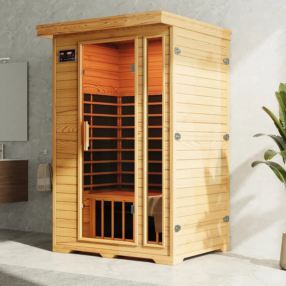 Esplora il lusso e il comfort con la nostra Sauna ad infrarossi Savon, un'opera d'arte di benessere in legno di cedro dalle dimensioni compatte ma potenti. Con una superficie di 95x126 cm e un'altezza di 195 cm, questa sauna offre un rifugio di relax personalizzato nella comodità della tua casa.