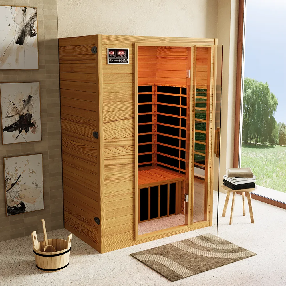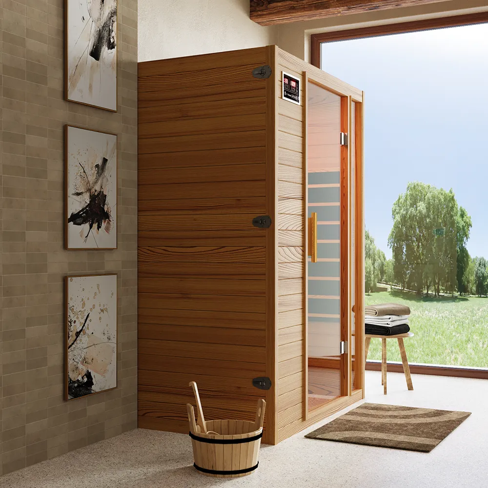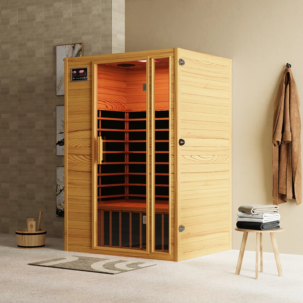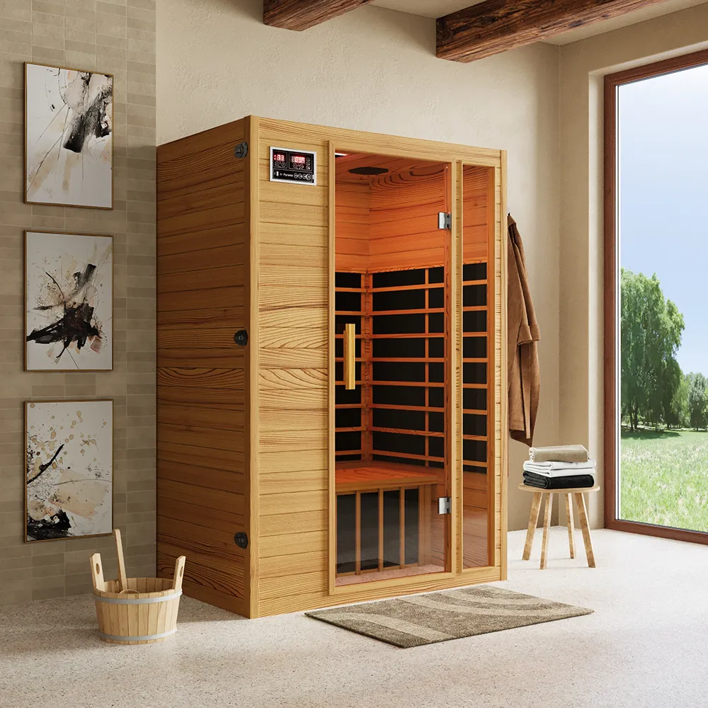 Immergiti nell'essenza del relax con la Sauna ad infrarossi Oulu, un capolavoro di benessere in legno di Hemlock dalle dimensioni di 97x120 cm. Questa sauna, oltre a essere uno spazio dedicato al benessere, è un connubio perfetto tra eleganza, tecnologia e comfort, ideato per trasformare la tua casa in un'oasi di serenità.
