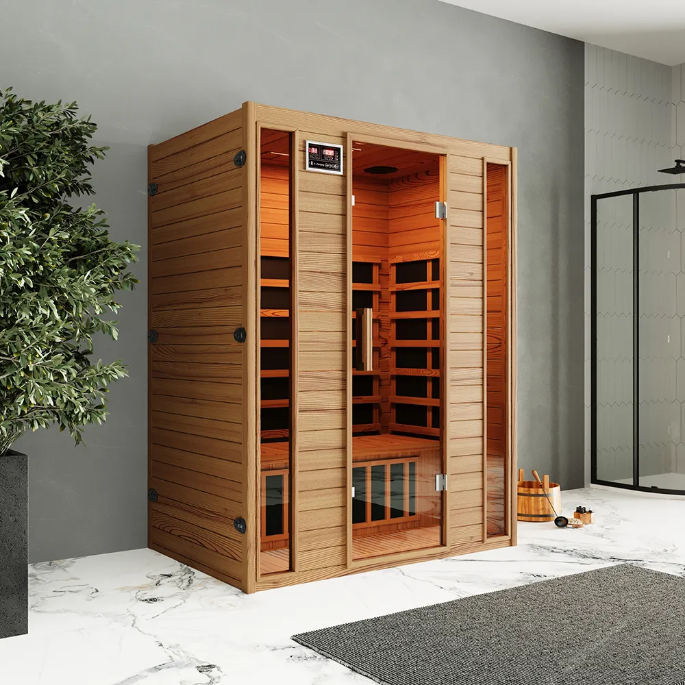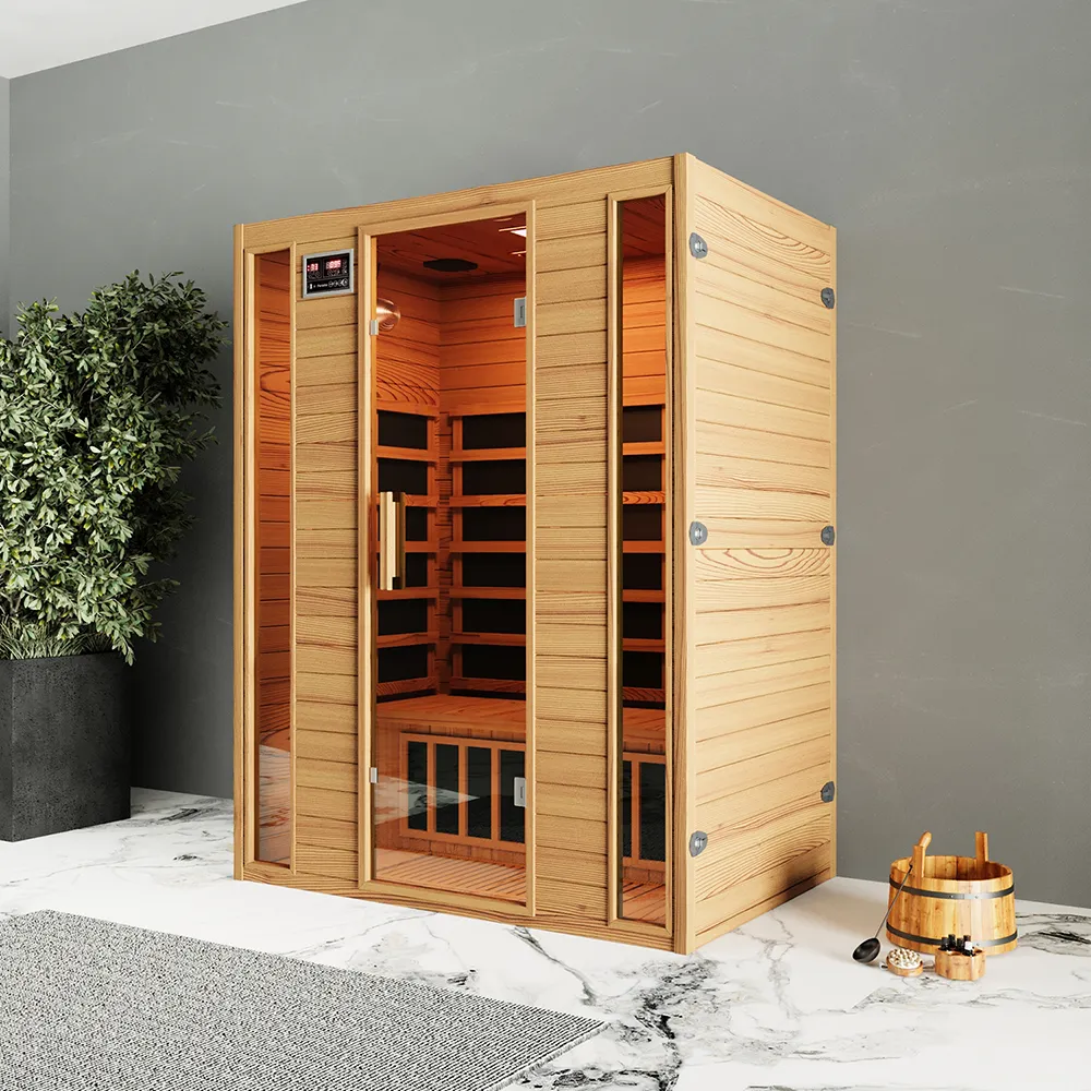 Immergiti nell'essenza del relax con la Sauna ad infrarossi Oulu, un capolavoro di benessere in legno di Hemlock dalle dimensioni di 97x146 cm. Questa sauna, oltre a essere uno spazio dedicato al benessere, è un connubio perfetto tra eleganza, tecnologia e comfort, ideato per trasformare la tua casa in un'oasi di serenità.