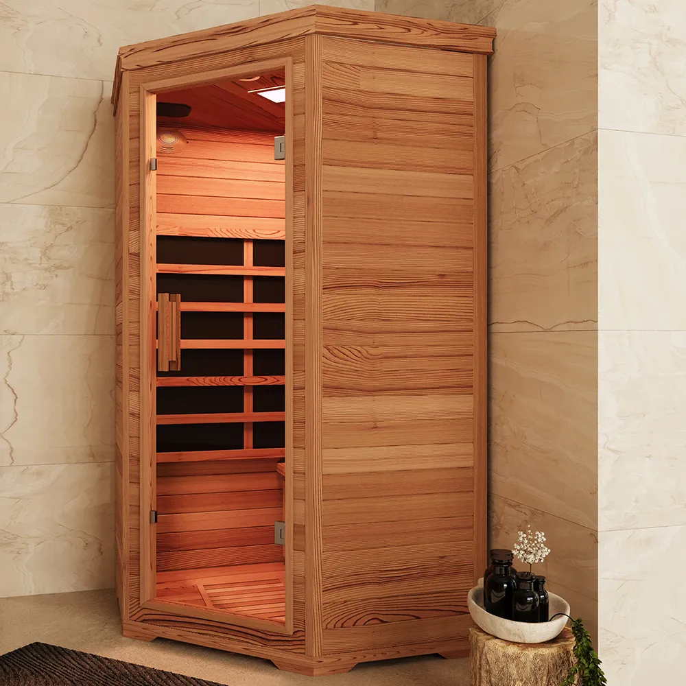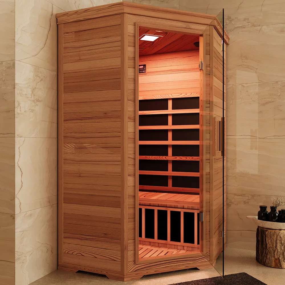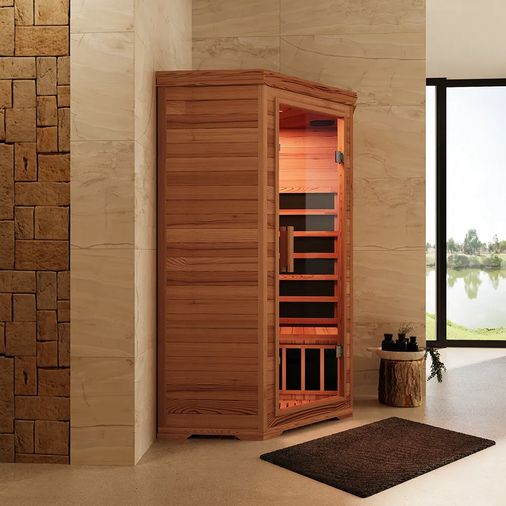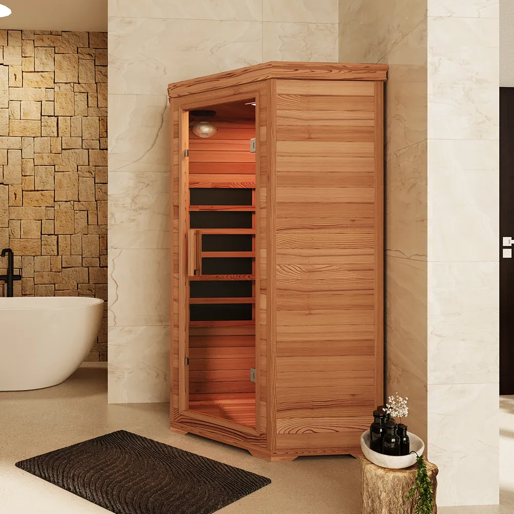 Scopri il lusso del relax con la sauna angolare infrarossi per la casa Turku, progettata per offrire un'esperienza di benessere esclusiva. Con le sue dimensioni 108x108 cm e un’altezza di 195 cm, è ideale per chi cerca una sauna infrarossi 2 posti angolare, perfetta per ambienti domestici raffinati.