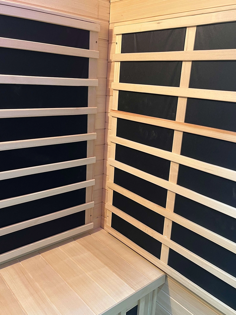 Grazie alla struttura a doppia parete da 3 cm e alla porta con chiusura magnetica, la sauna mantiene perfettamente il calore, offrendo un ambiente accogliente e avvolgente. La potenza di 1500W assicura un riscaldamento efficiente, mentre il doppio pannello di controllo interno ed esterno permette una gestione intuitiva della temperatura.
