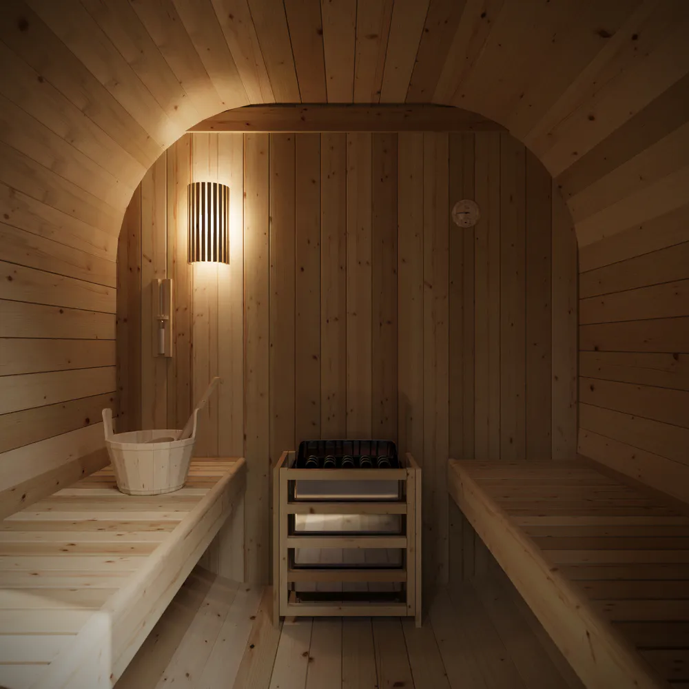 Il cuore della sauna è la sua stufa elettrica da 6 kW. Capace di raggiungere una temperatura massima compresa tra 80°C e 100°C, permette di godere appieno dei benefici del calore secco tipico della tradizione finlandese. La potenza elevata consente un riscaldamento rapido ed efficiente dello spazio interno.