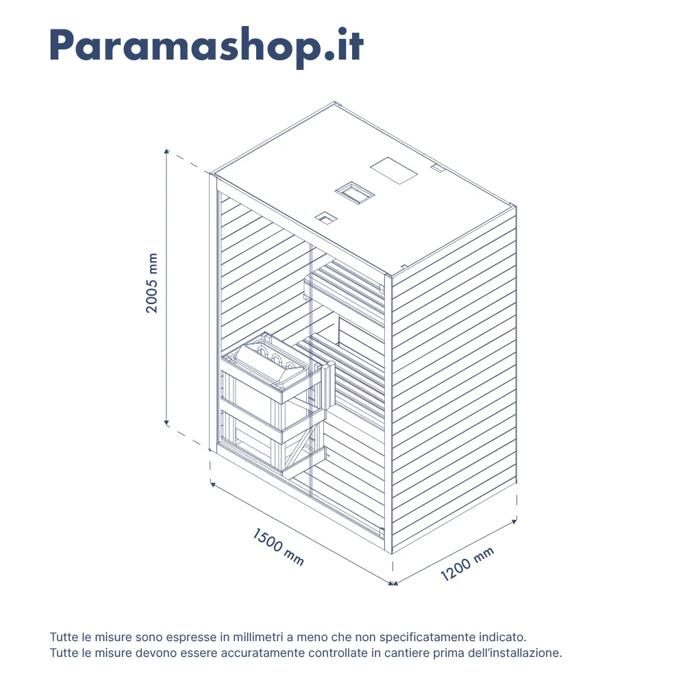 Sauna finlandese da interno 2-3 persone 150x120cm h200 in legno di abete | Nirva