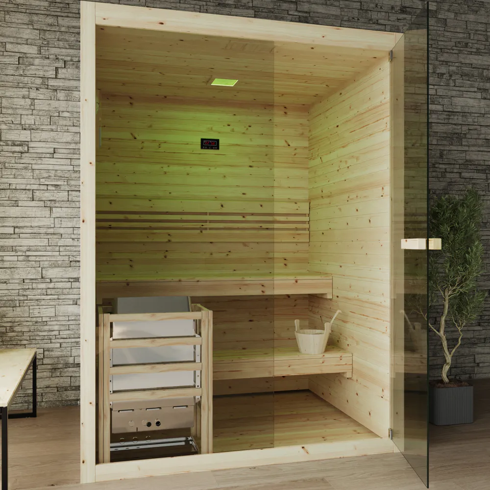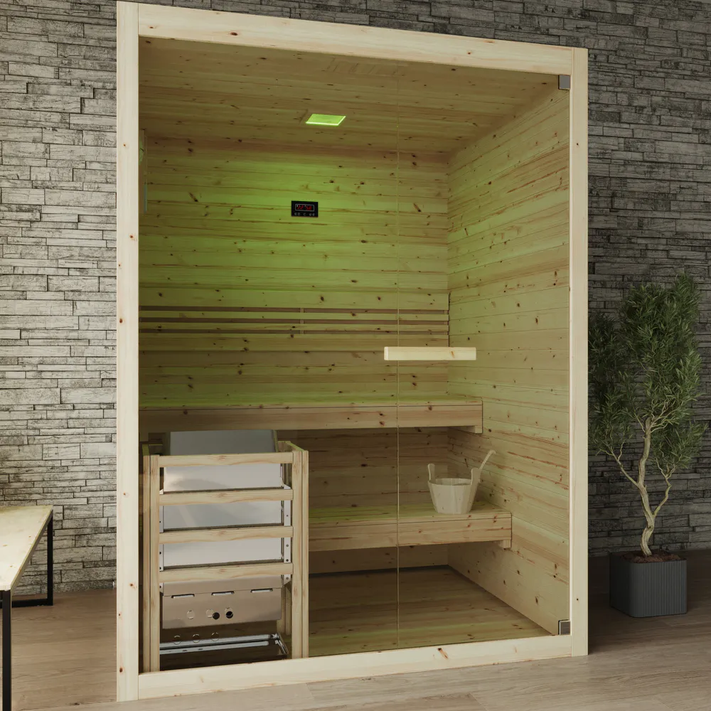 La sauna finlandese modello Nirva è una soluzione compatta e di design, ideale per chi desidera godere dei benefici della sauna tradizionale finlandese anche in spazi ridotti. Realizzata in pregiato legno di abete rosso, questa sauna offre un ambiente accogliente e resistente.