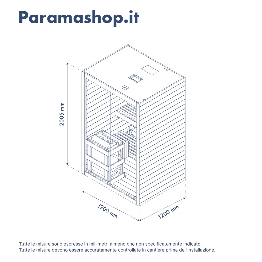 Sauna finlandese da interno 2 persone 120x120cm h200 in legno di abete | Nirva