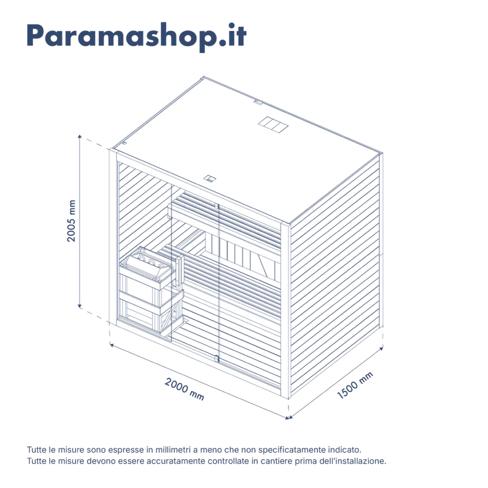 Sauna finlandese da interno 4-5 persone 200x150cm h200 in legno di abete | Nirva