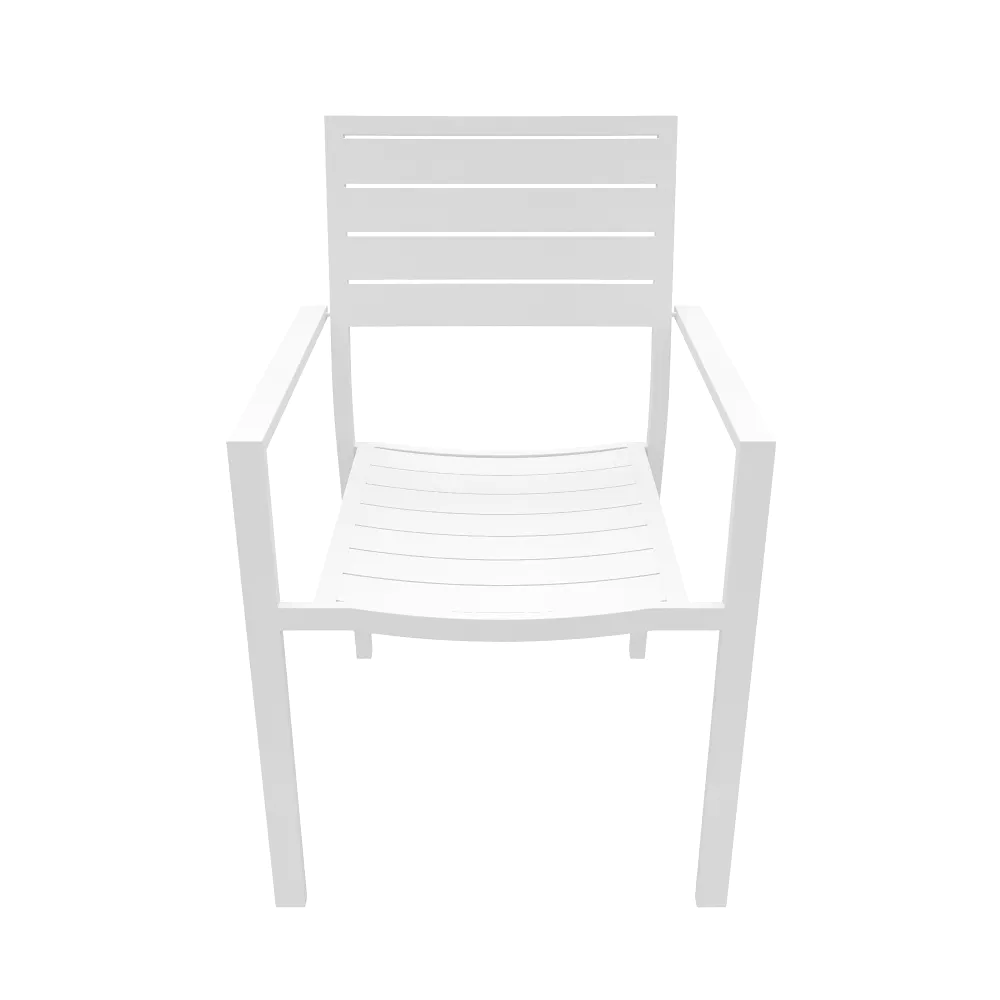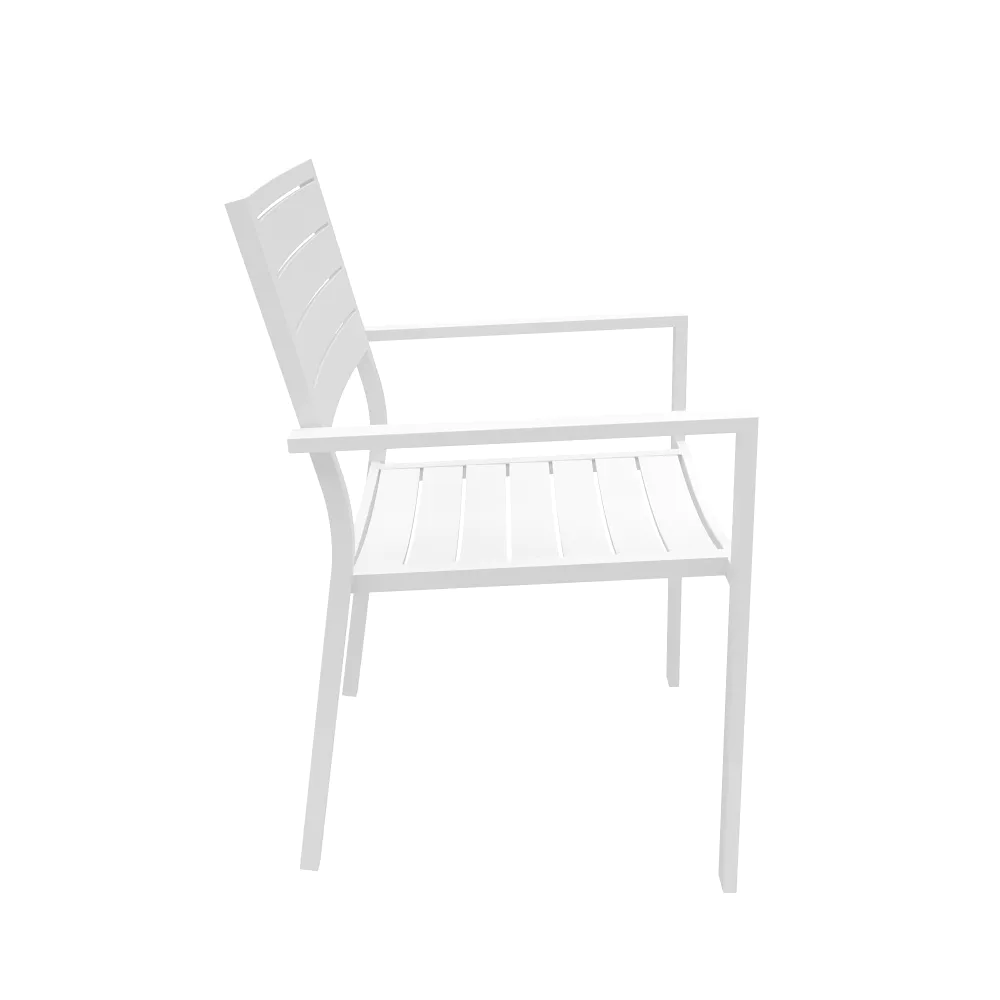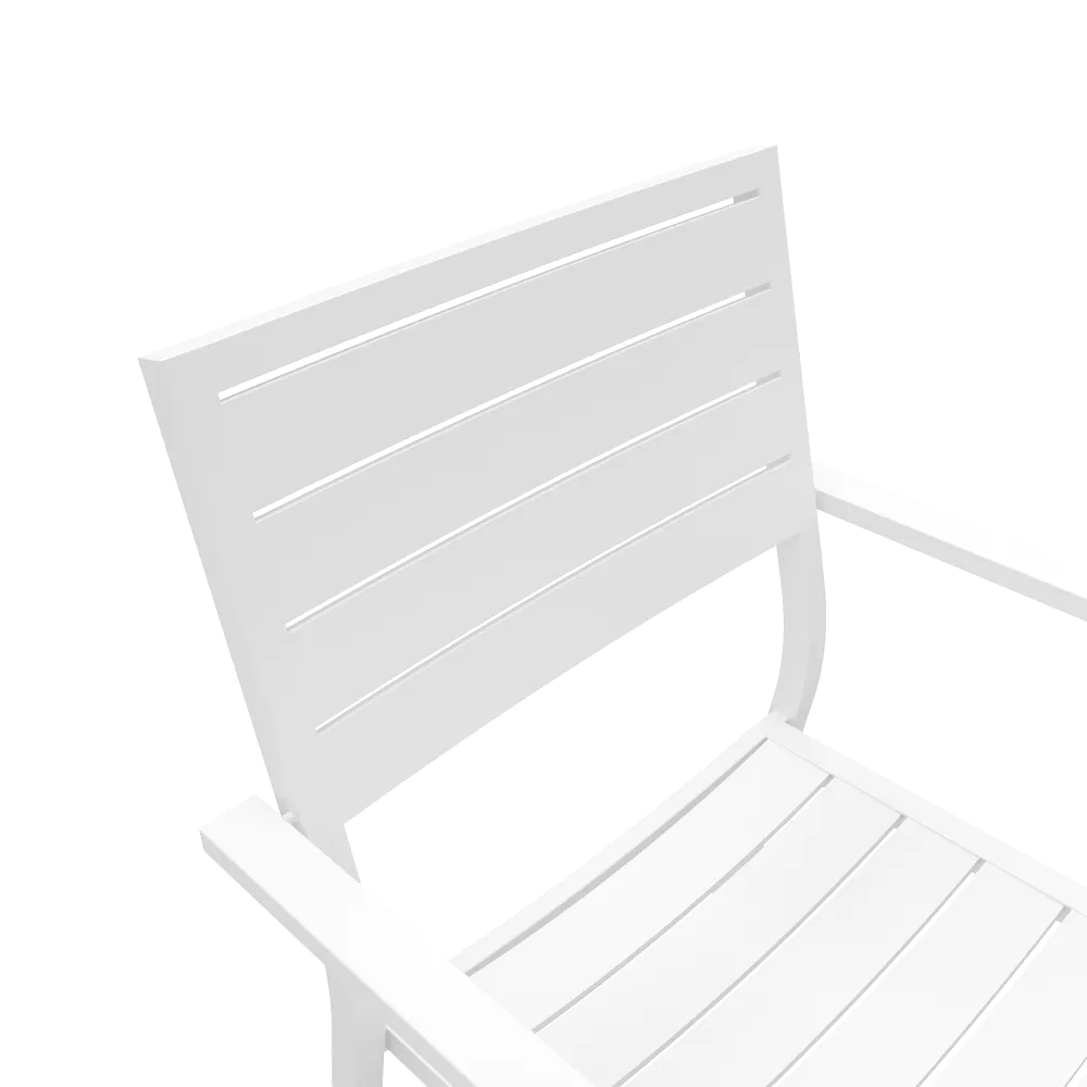 Sedia da esterno a doghe con braccioli in alluminio bianco | Zenor