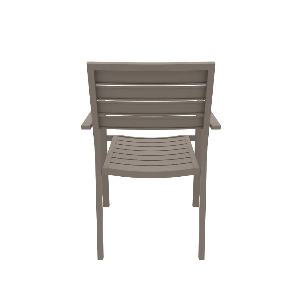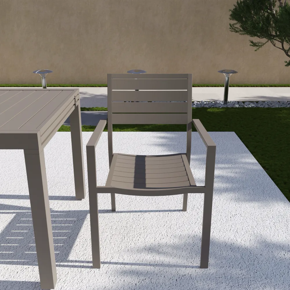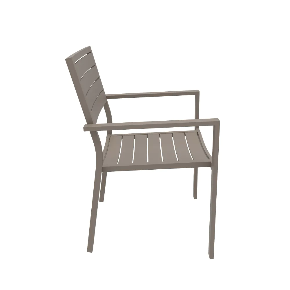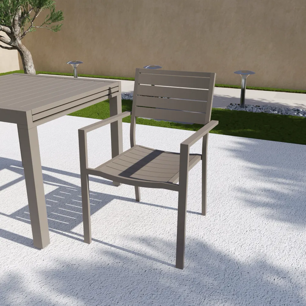 Sedia da esterno a doghe con braccioli in alluminio tortora | Zenor