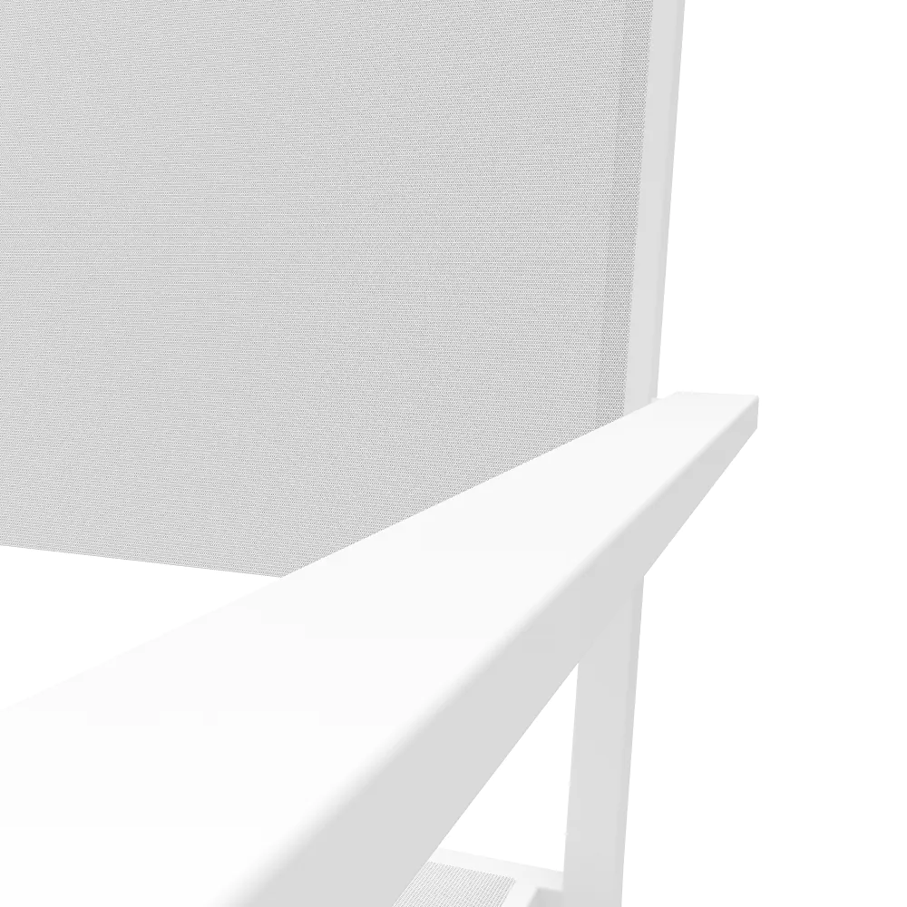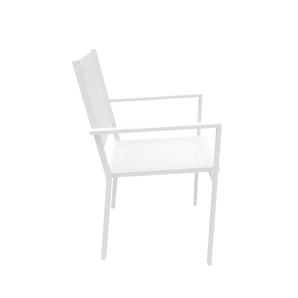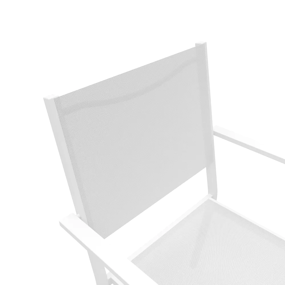 Sedia da esterno in textilene bianco con braccioli in alluminio squadrati | Marel