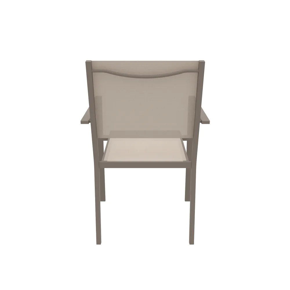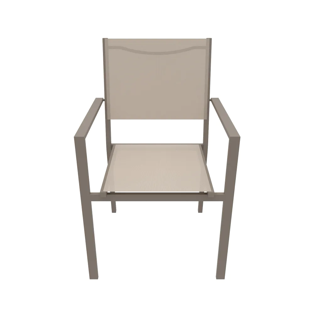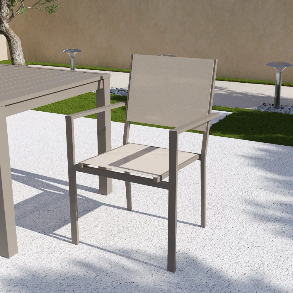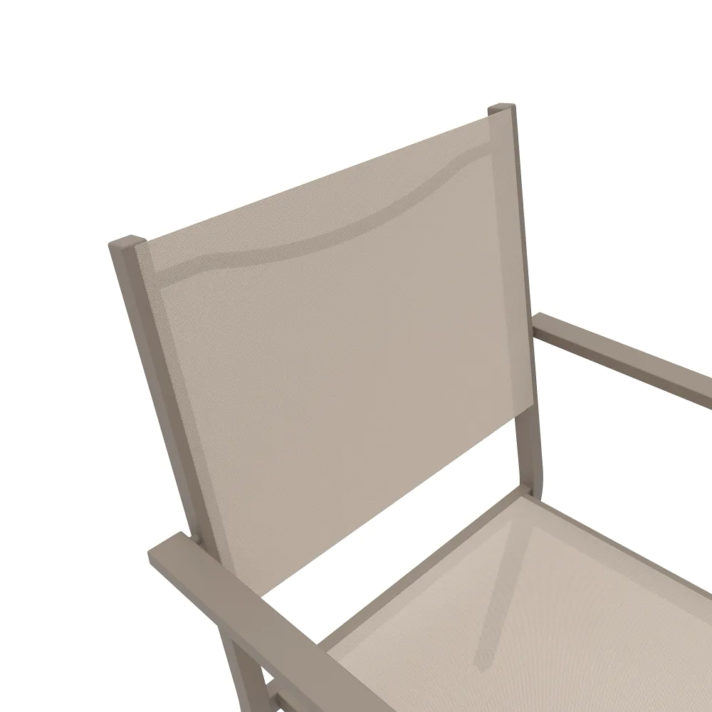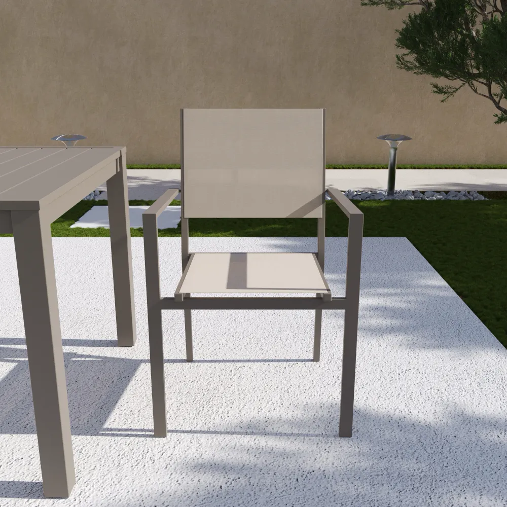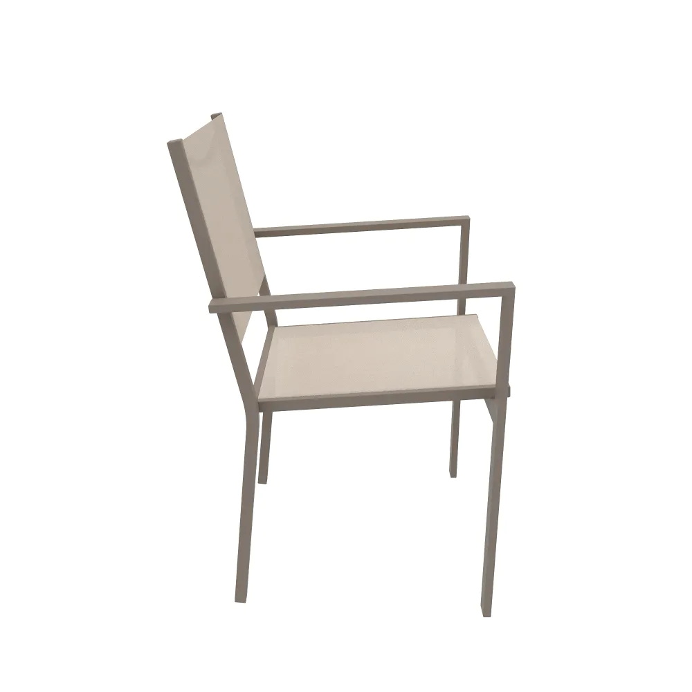 Sedia da esterno in textilene tortora con braccioli in alluminio squadrati | Marel