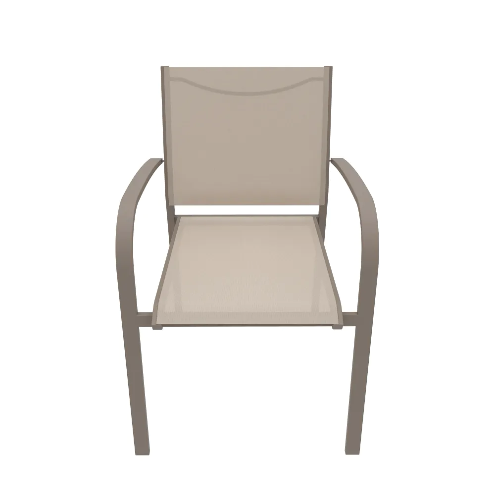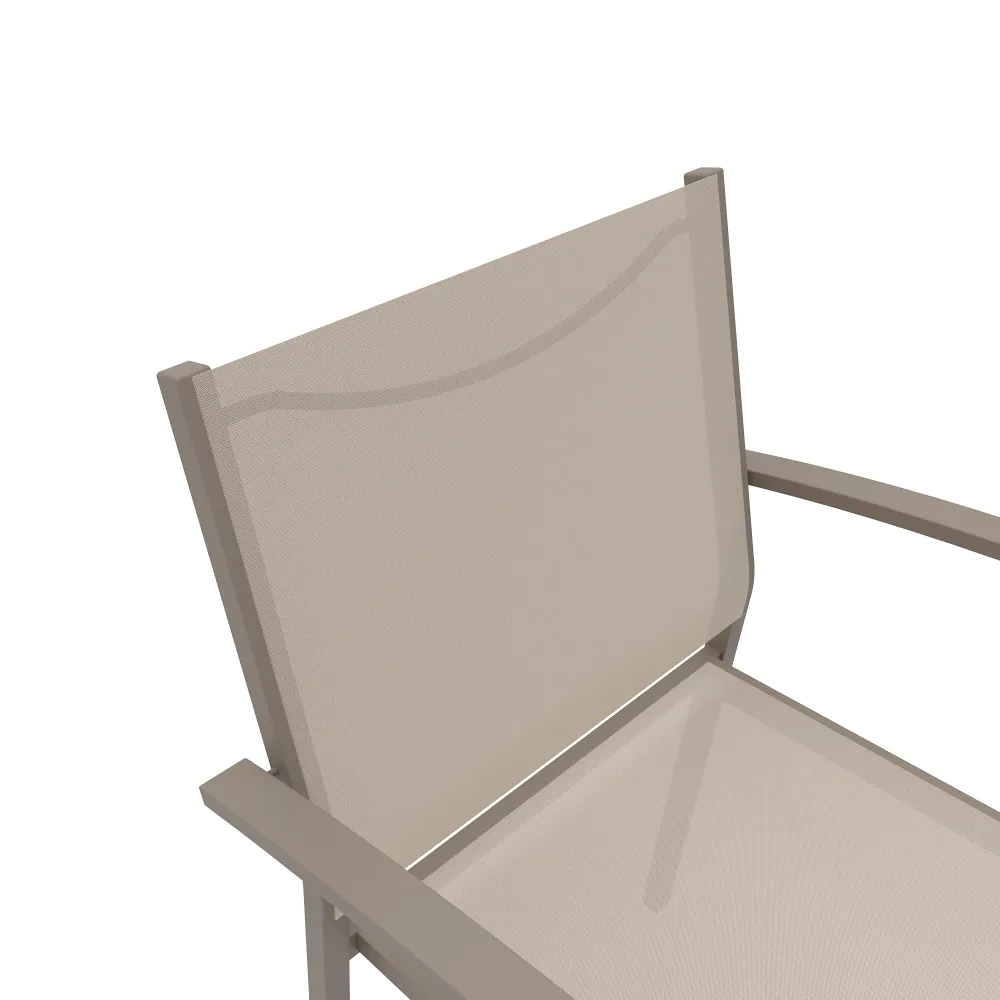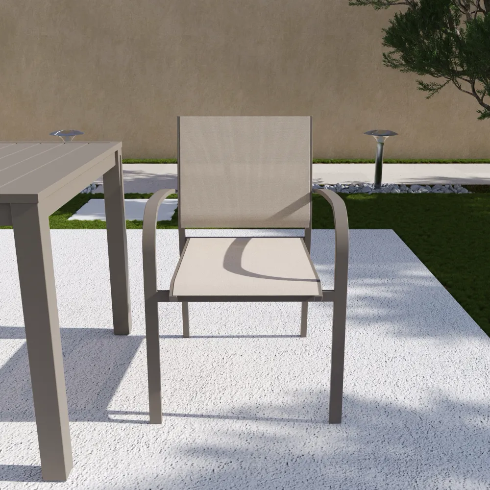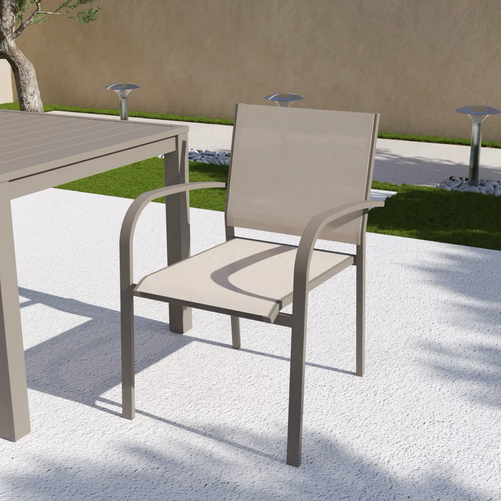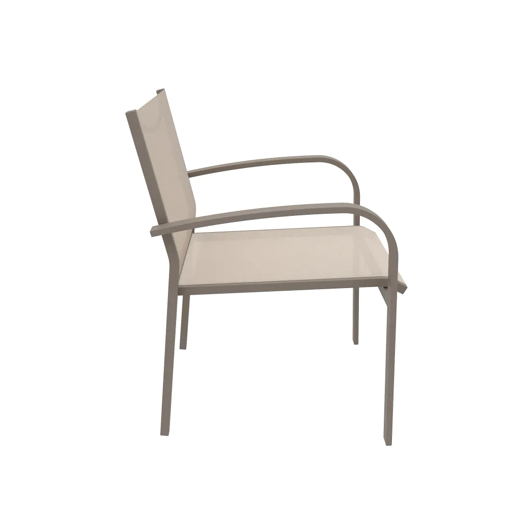 Sedia da esterno in textilene tortora con braccioli in alluminio tondi | Marel