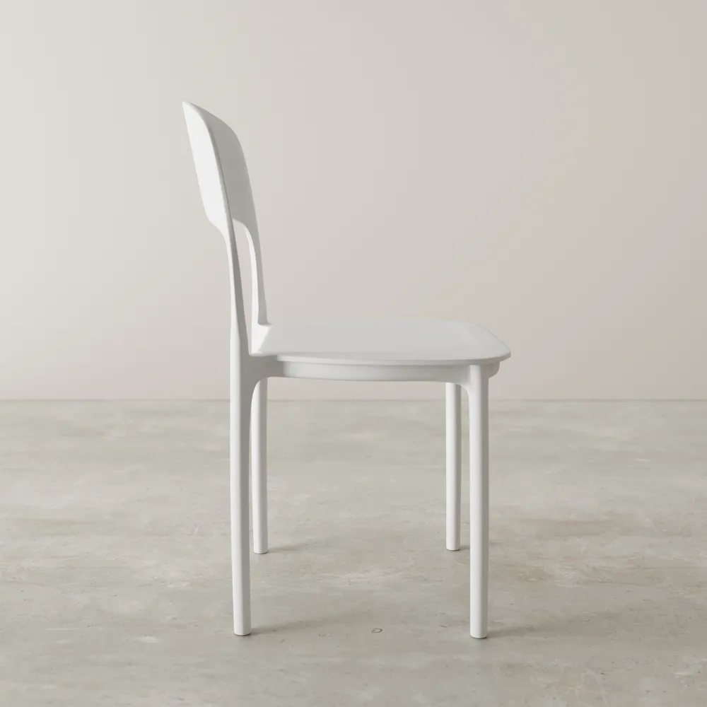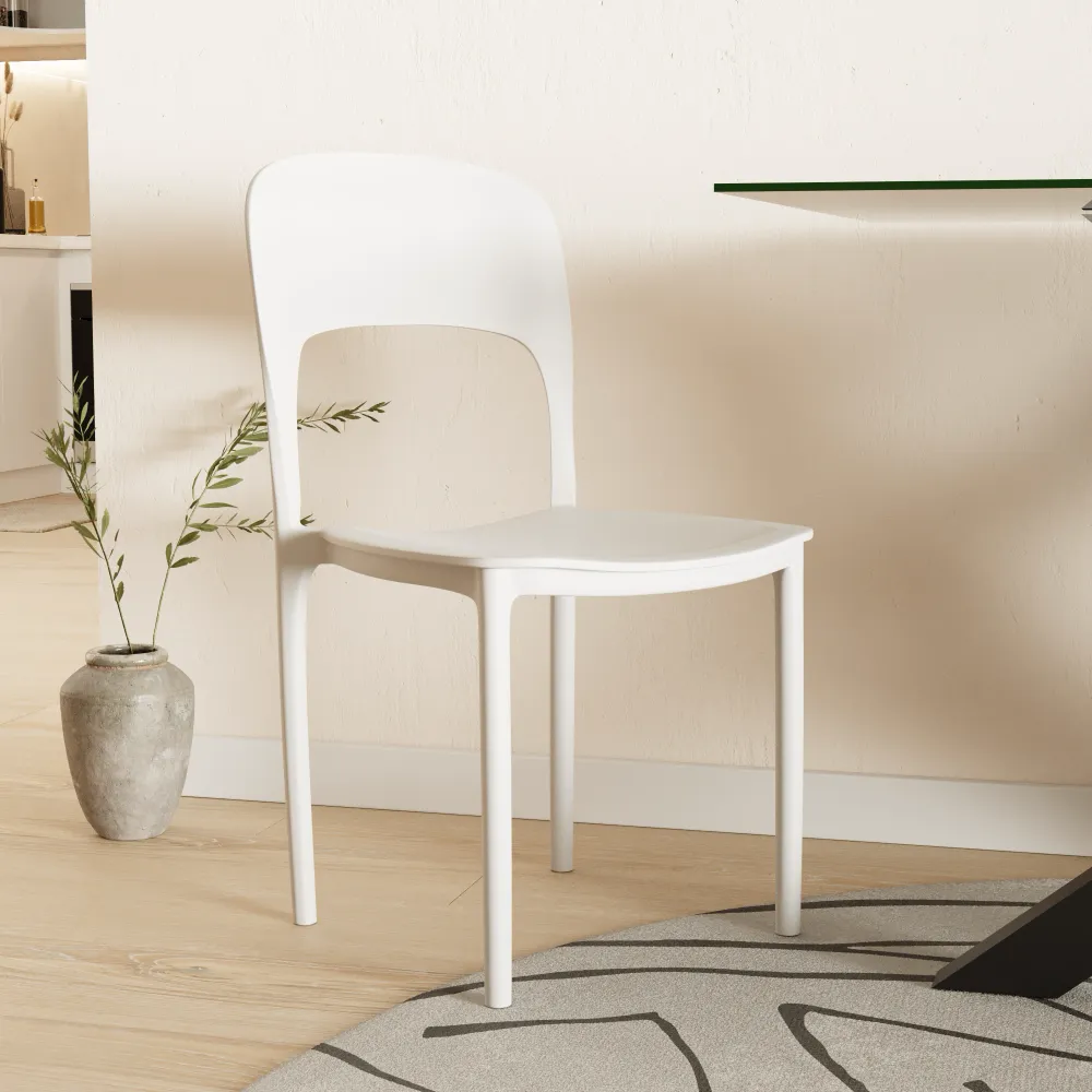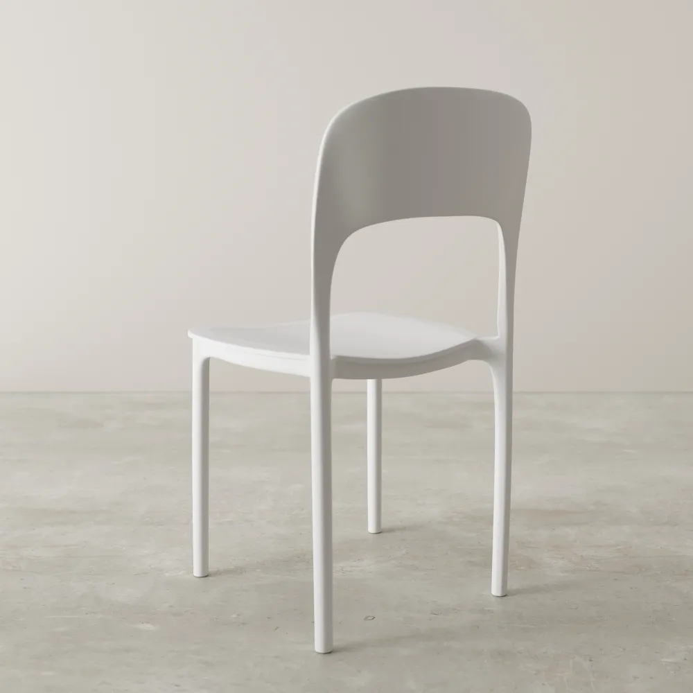 Il suo look minimalista, con lo schienale affusolato, dona un'eleganza discreta e contemporanea, mentre l'altezza della seduta di 44 cm garantisce il massimo comfort per i tuoi pasti o momenti di relax. La caratteristica impilabile la rende l'alleata perfetta per ottimizzare lo spazio quando non serve, perfetta per chi ama l'ordine e la flessibilità.