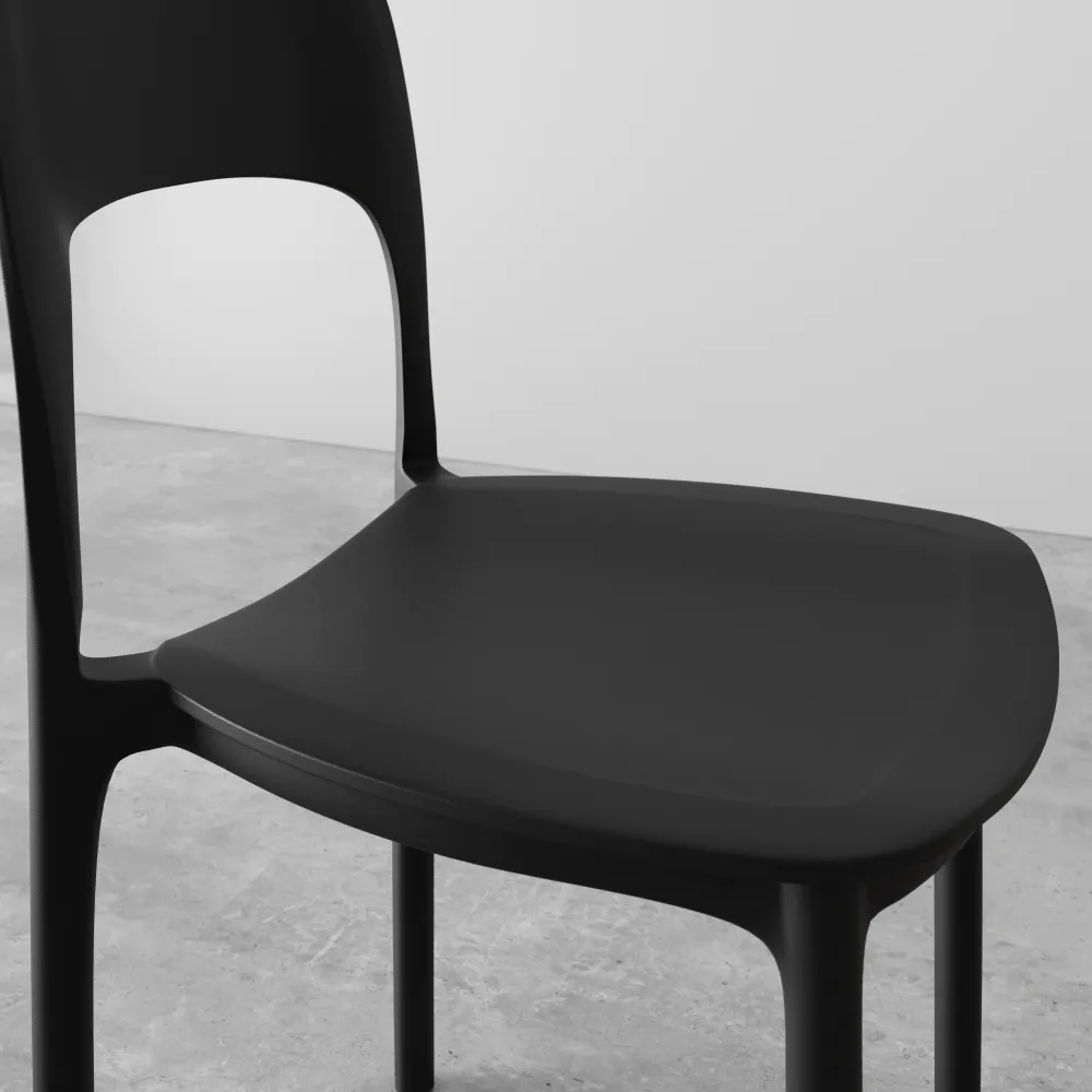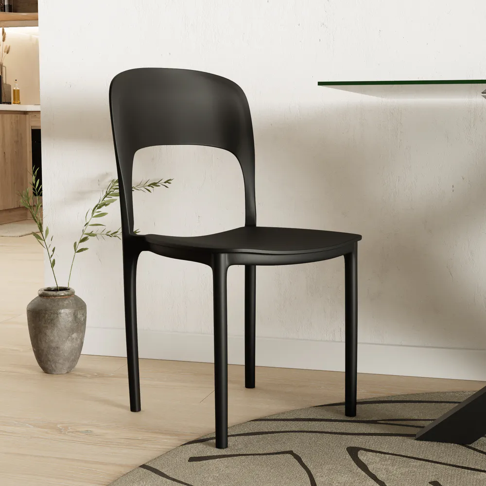 Il suo look minimalista, con lo schienale affusolato, dona un'eleganza discreta e contemporanea, mentre l'altezza della seduta di 44 cm garantisce il massimo comfort per i tuoi pasti o momenti di relax. La caratteristica impilabile la rende l'alleata perfetta per ottimizzare lo spazio quando non serve, perfetta per chi ama l'ordine e la flessibilità.