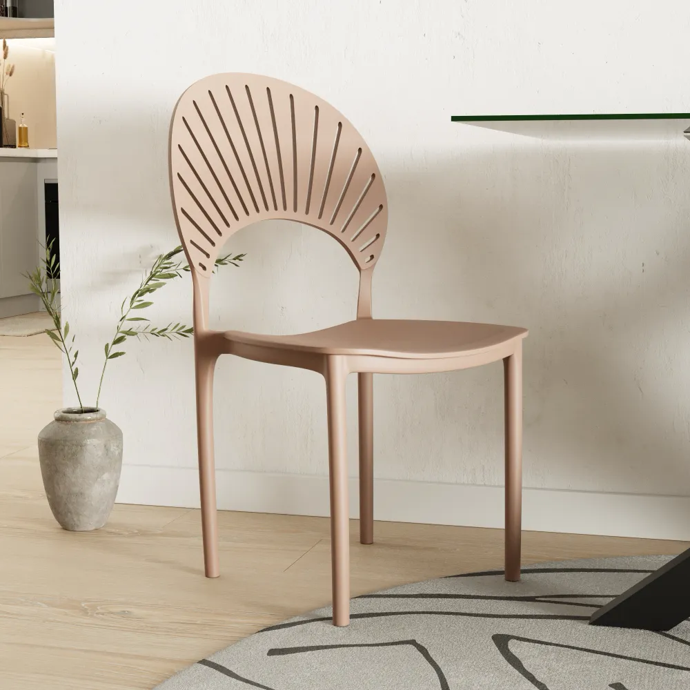 Sedia impilabile in polipropilene tortora con schienale a raggi | Iris