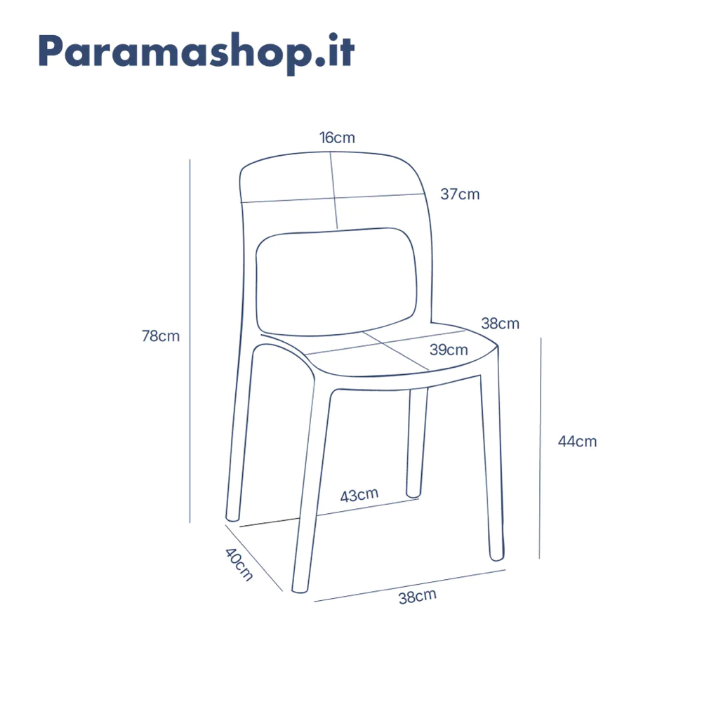 Il suo look minimalista, con lo schienale affusolato, dona un'eleganza discreta e contemporanea, mentre l'altezza della seduta di 44 cm garantisce il massimo comfort per i tuoi pasti o momenti di relax. La caratteristica impilabile la rende l'alleata perfetta per ottimizzare lo spazio quando non serve, perfetta per chi ama l'ordine e la flessibilità.