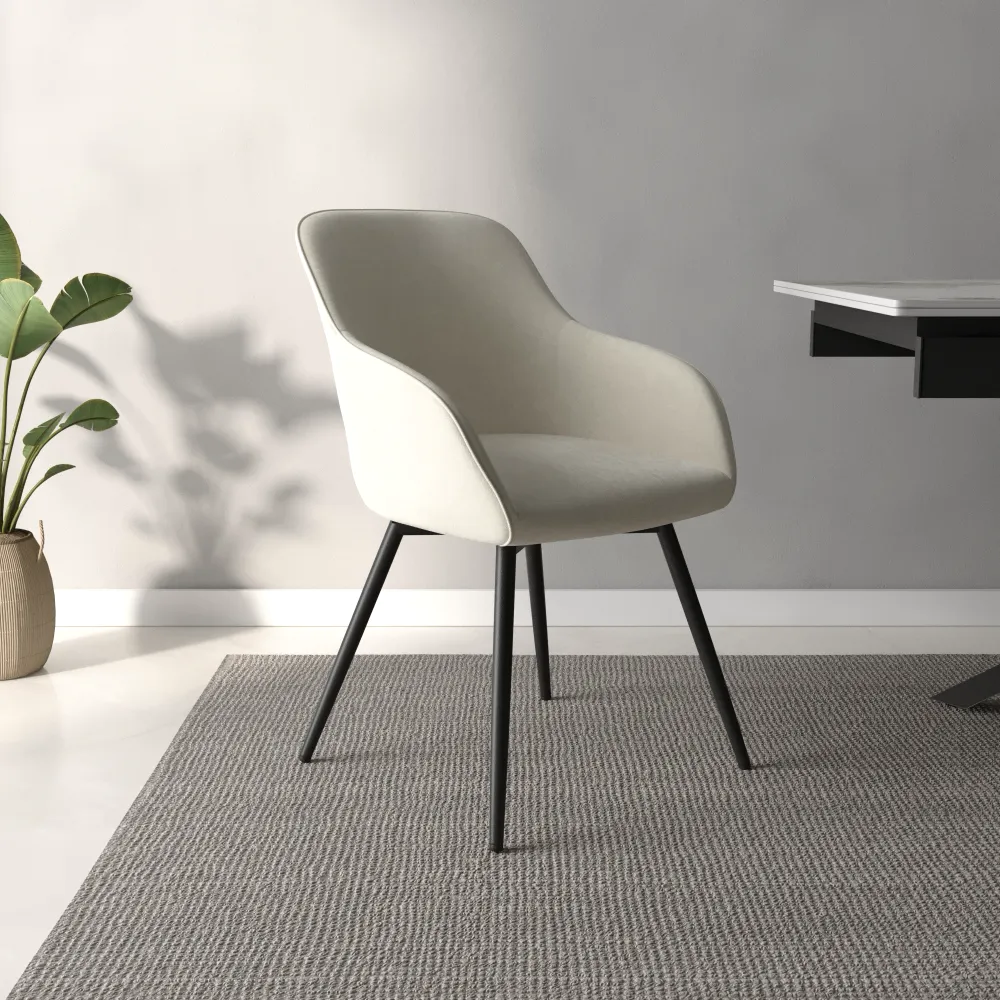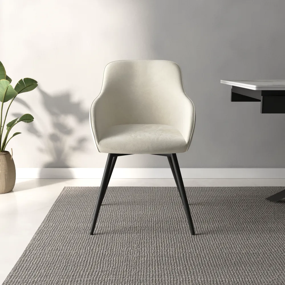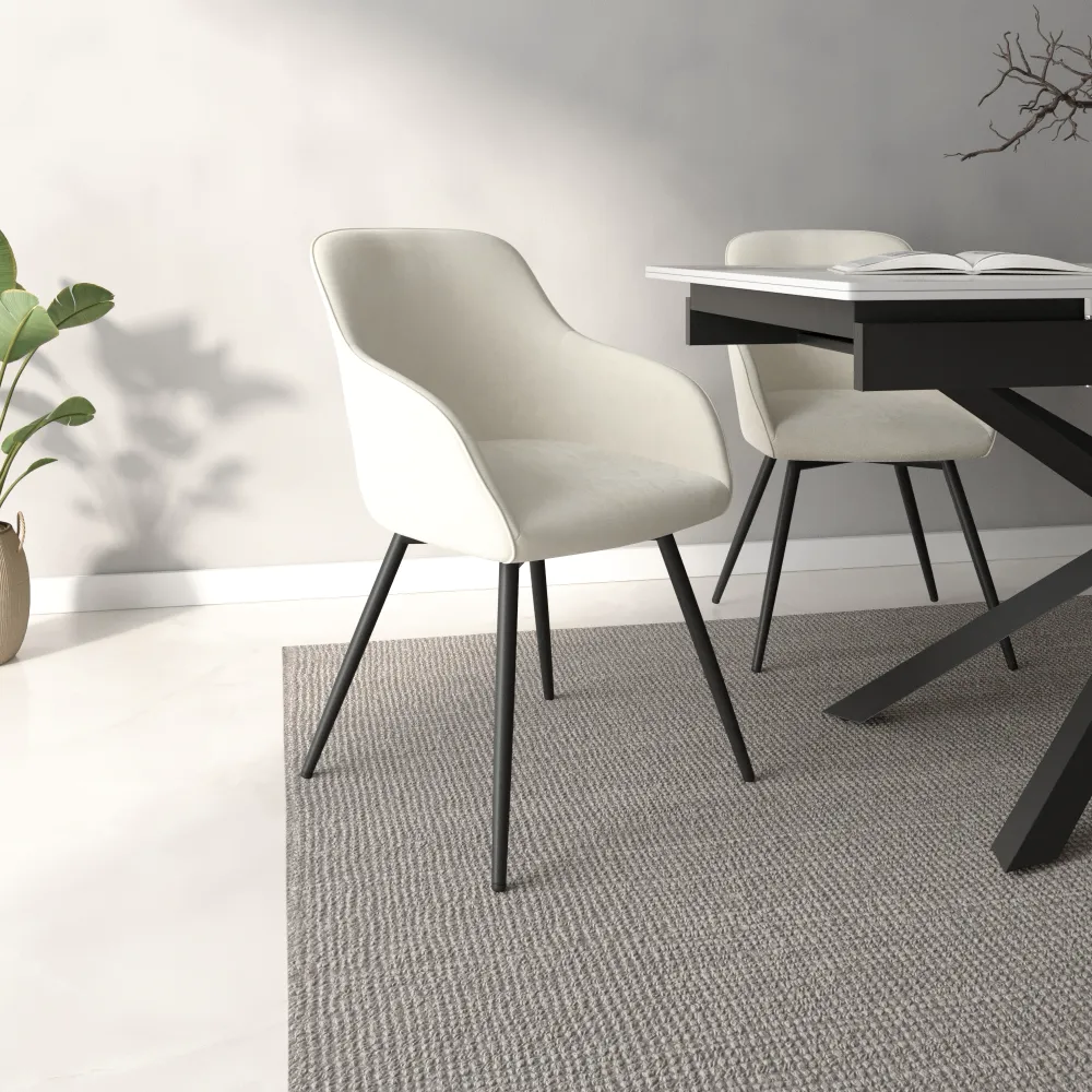 Set 2 sedie in velluto beige schienale e braccioli avvolgenti con gambe in acciaio nero | Diana