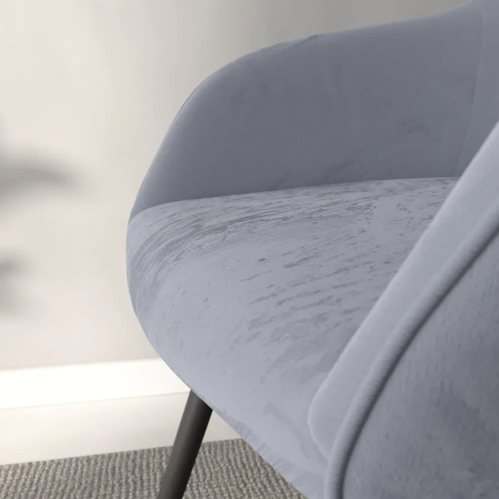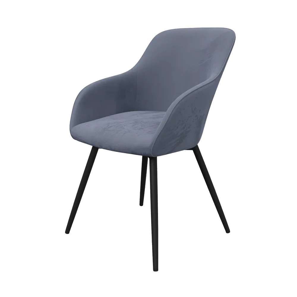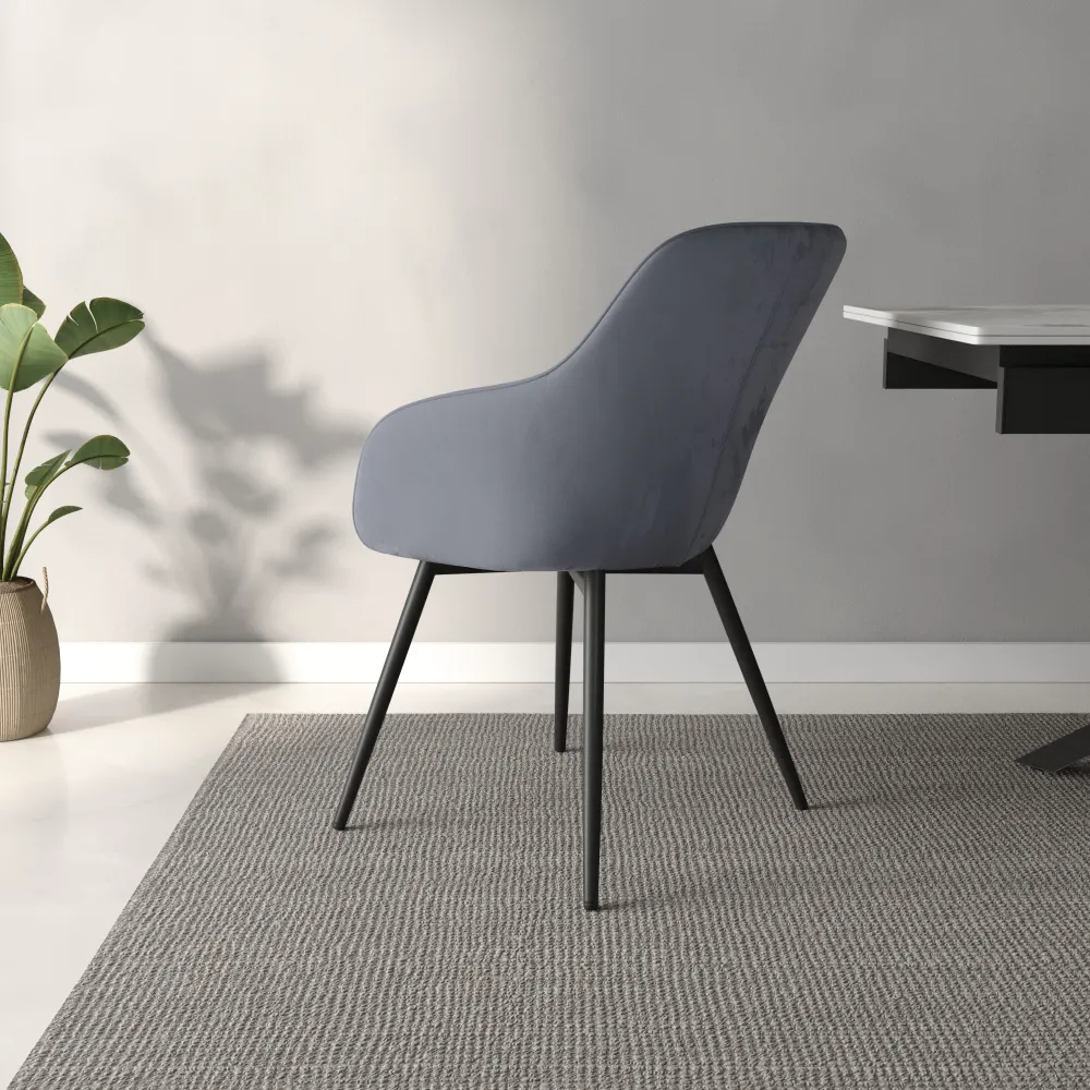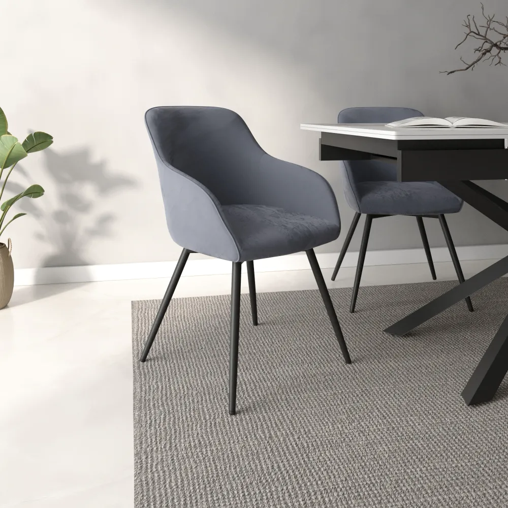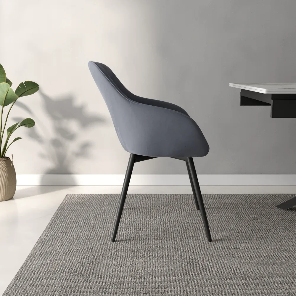 Set 2 sedie in velluto grigio schienale e braccioli avvolgenti con gambe in acciaio nero | Diana