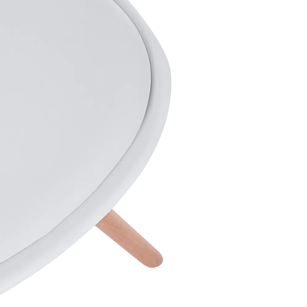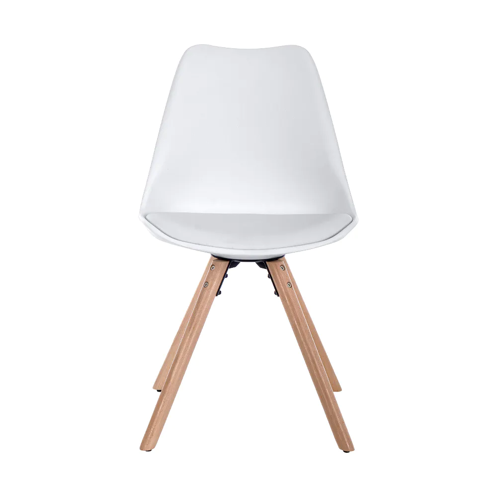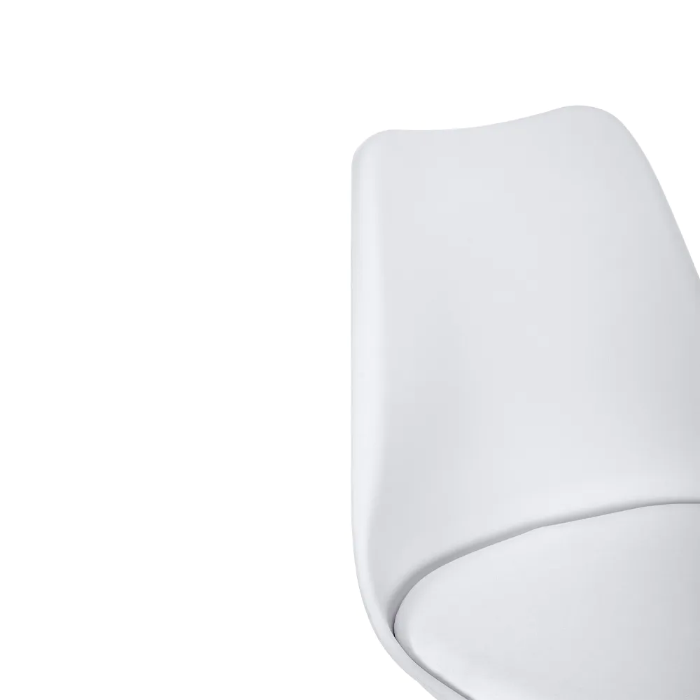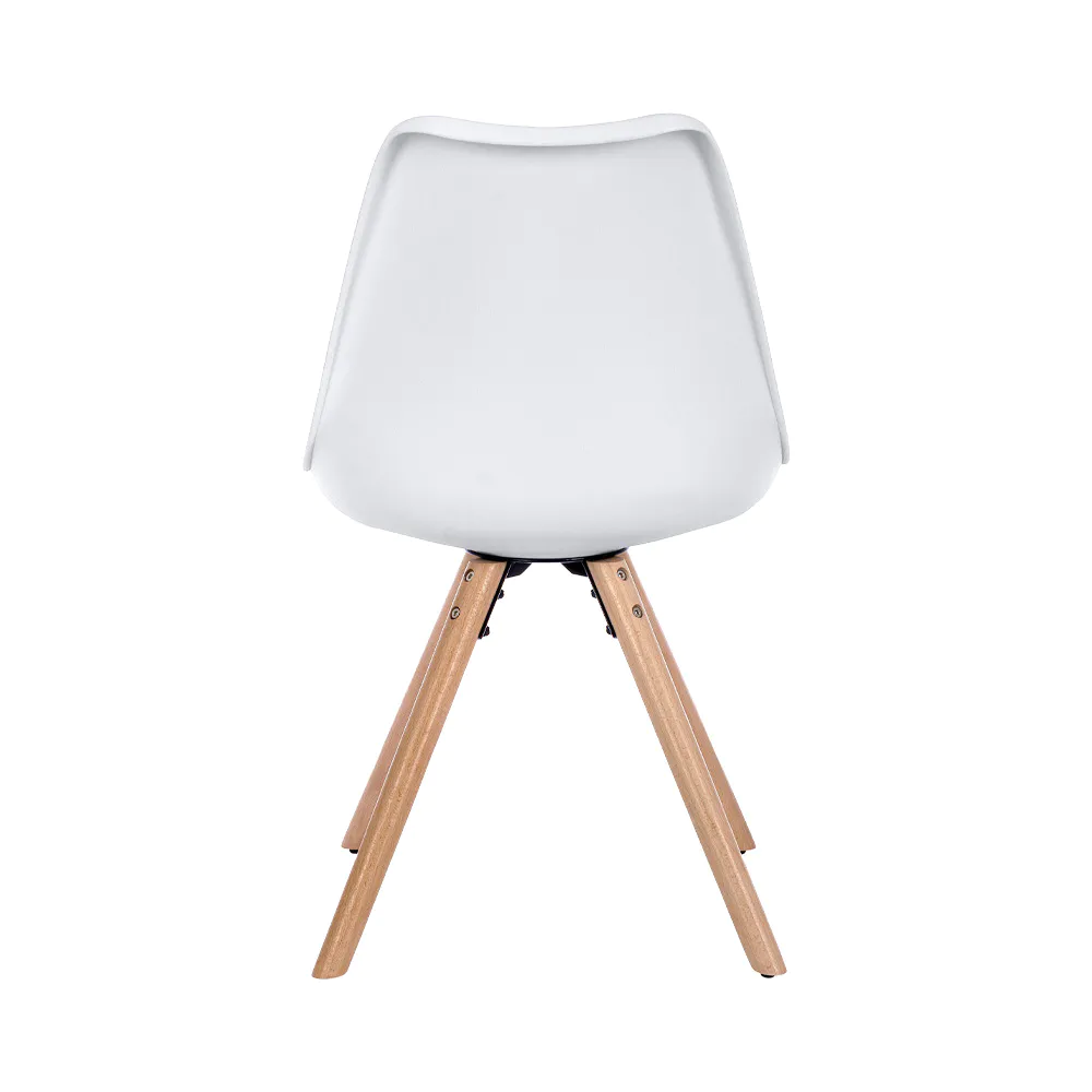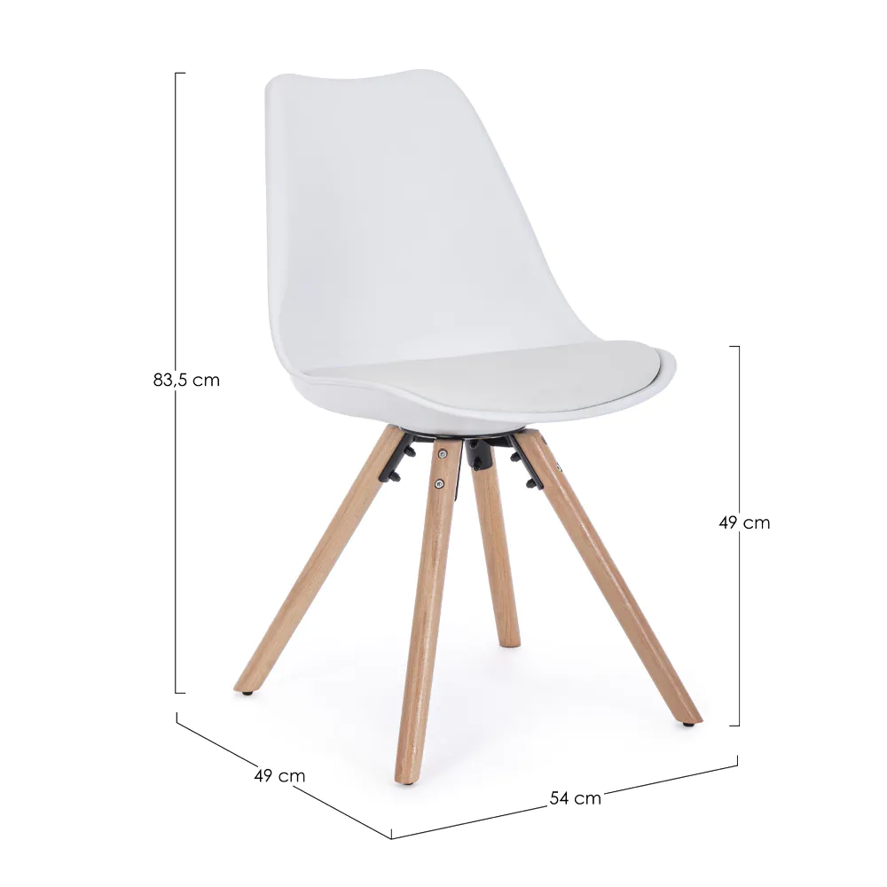 Questa sedia celebra lo stile nordico con un design pulito, funzionale ed elegante. La seduta in polipropilene bianco, resistente e facile da pulire, si fonde armoniosamente con un cuscino integrato in similpelle tono su tono, offrendo un comfort extra.