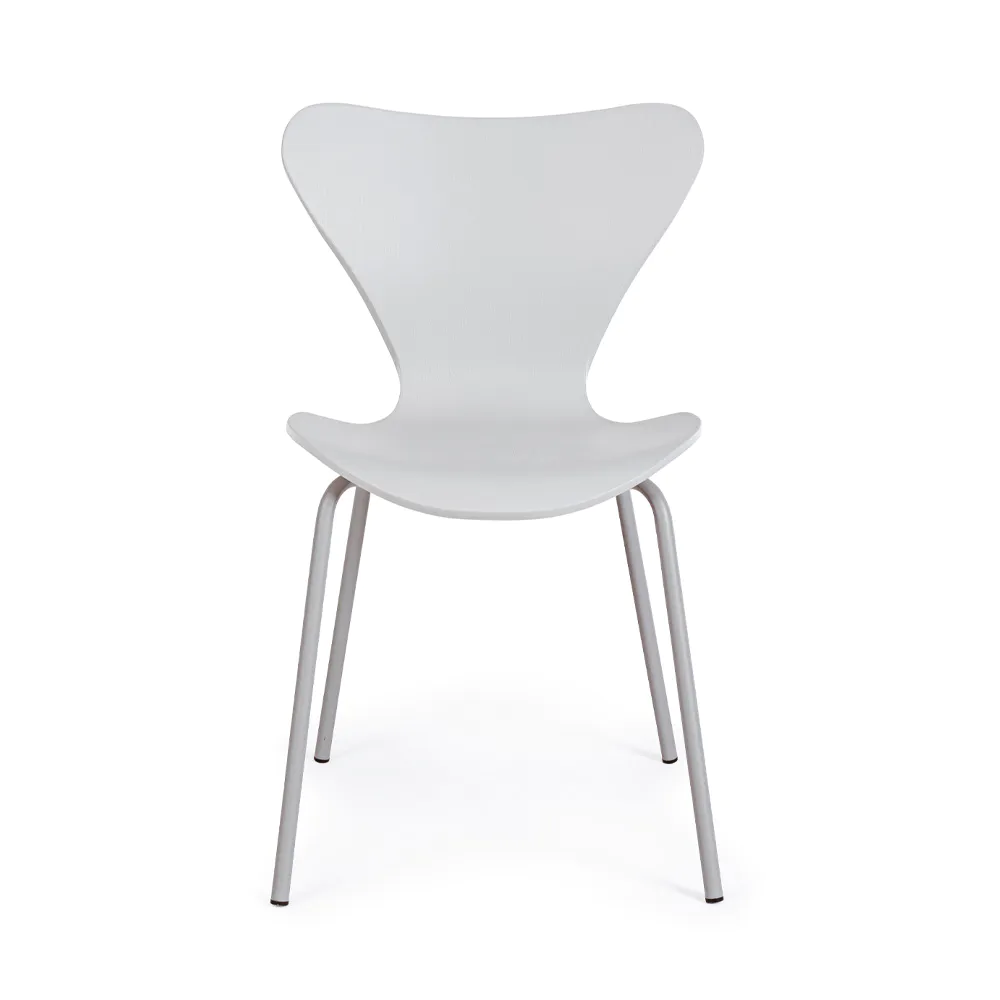 Le gambe in acciaio verniciato a polvere epossidica grigia, da assemblare con facilità, conferiscono stabilità e brillantezza alla struttura, creando un contrasto elegante con la semplicità della seduta.