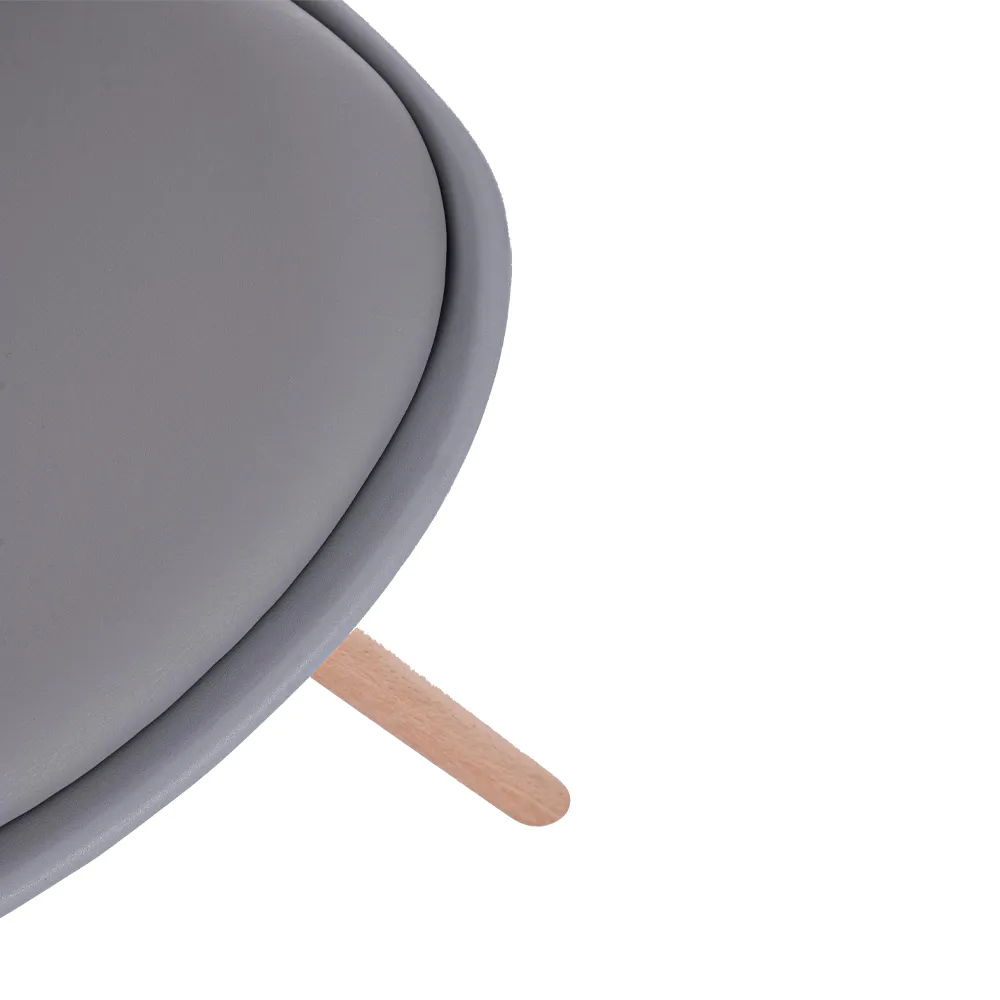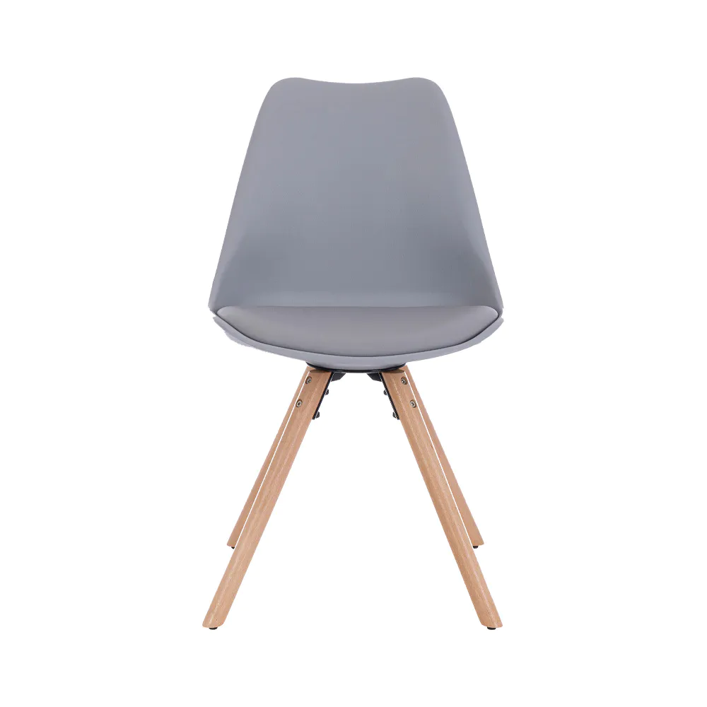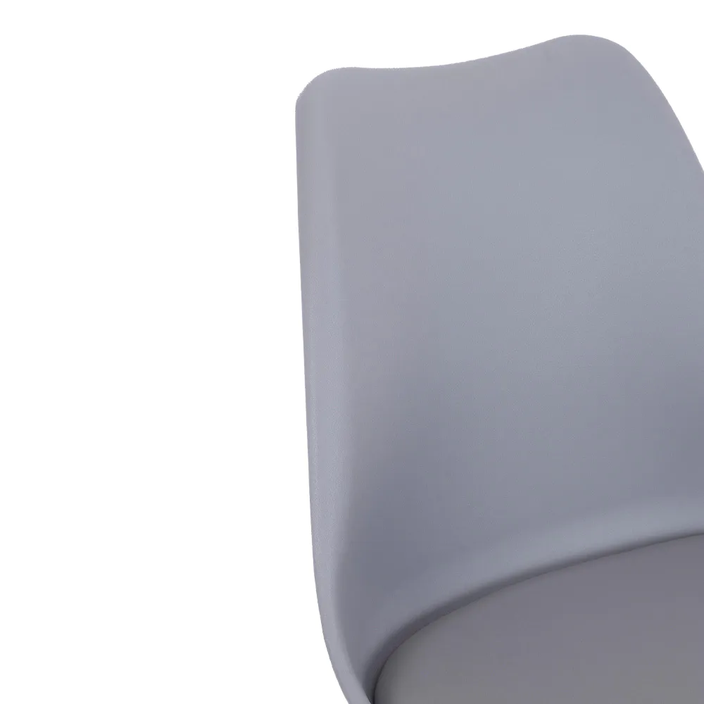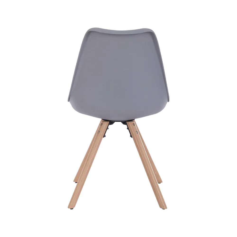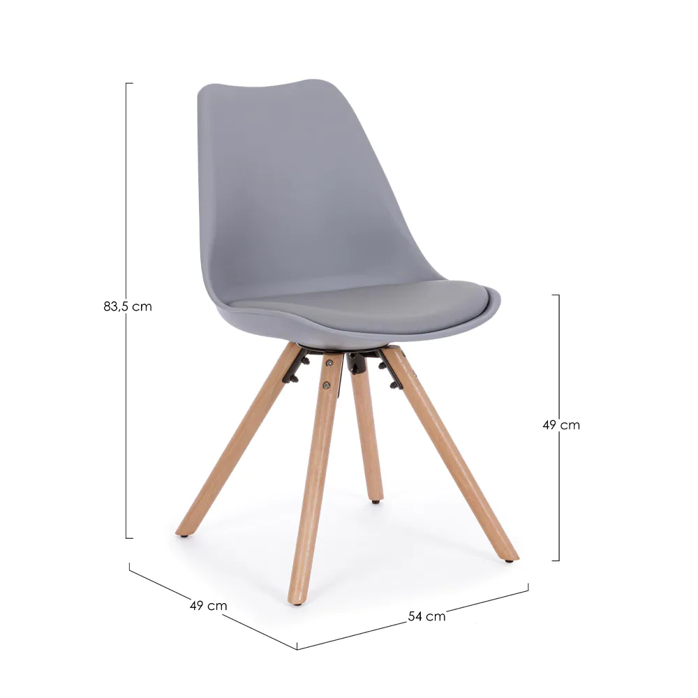 Questa sedia celebra lo stile nordico con un design pulito, funzionale ed elegante. La seduta in polipropilene grigio, resistente e facile da pulire, si fonde armoniosamente con un cuscino integrato in similpelle tono su tono, offrendo un comfort extra.