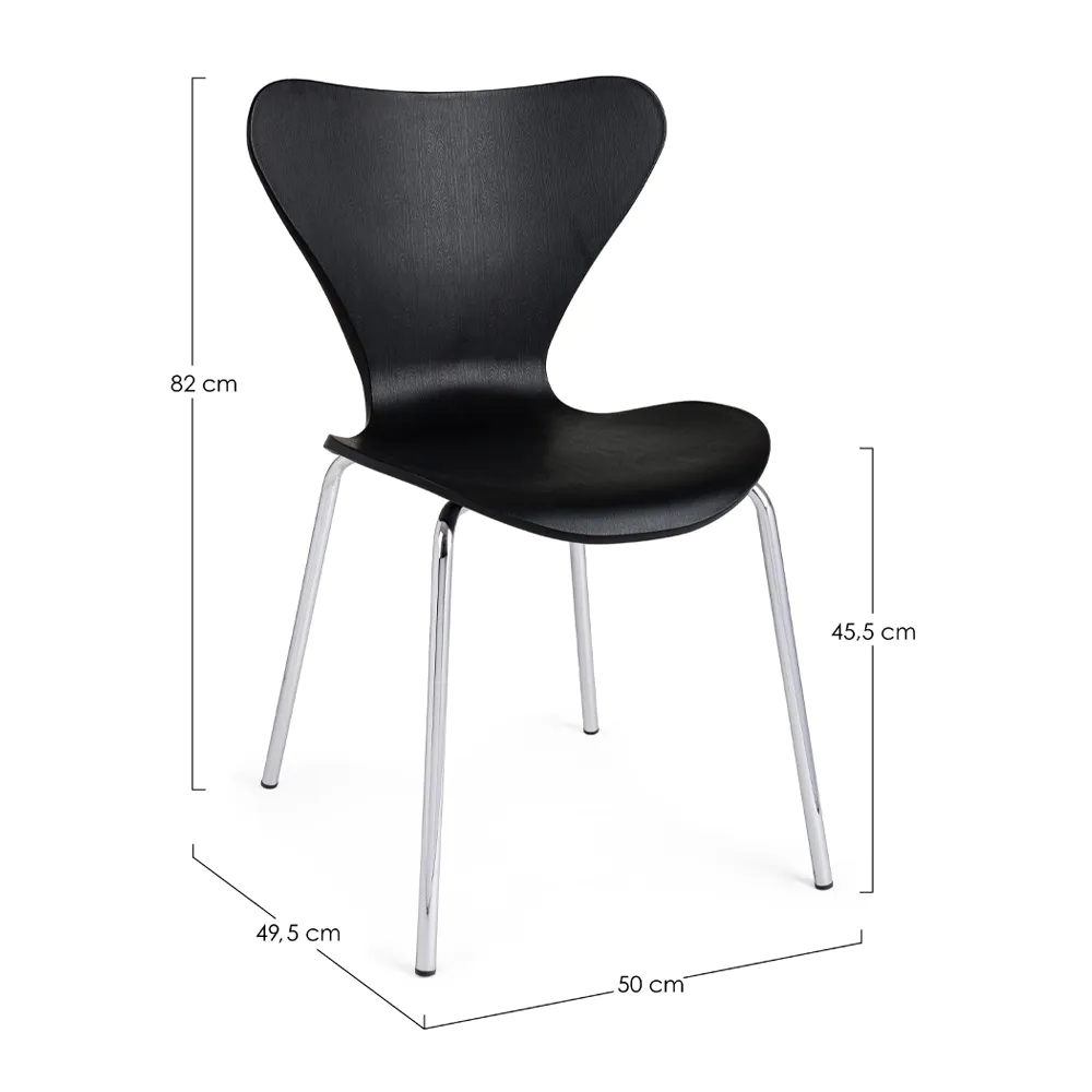 Set 4 sedie in polipropilene nero e gambe in acciaio cromato | Tessa