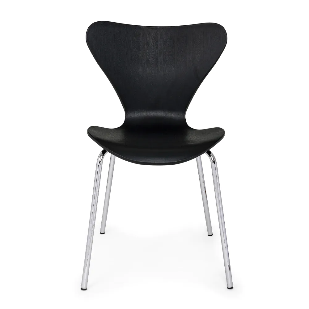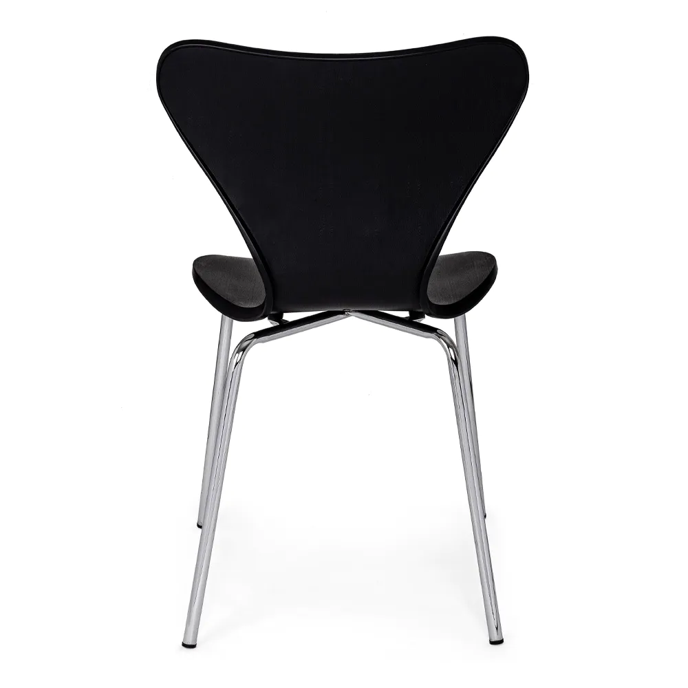 Le gambe in acciaio cromato, da assemblare con facilità, conferiscono stabilità e brillantezza alla struttura, creando un contrasto elegante con la semplicità della seduta.