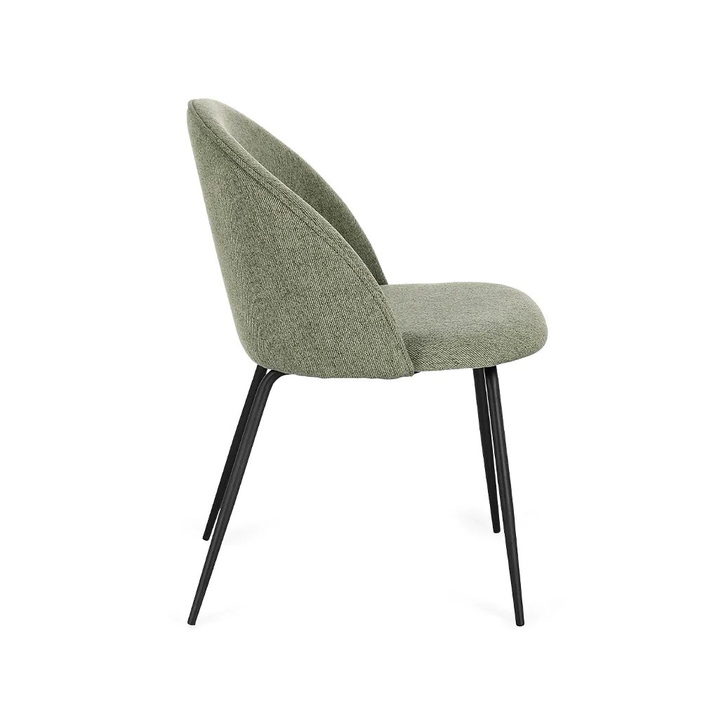 Set 4 sedie seduta in poliestere salvia e gambe in acciaio nero | New Tanya