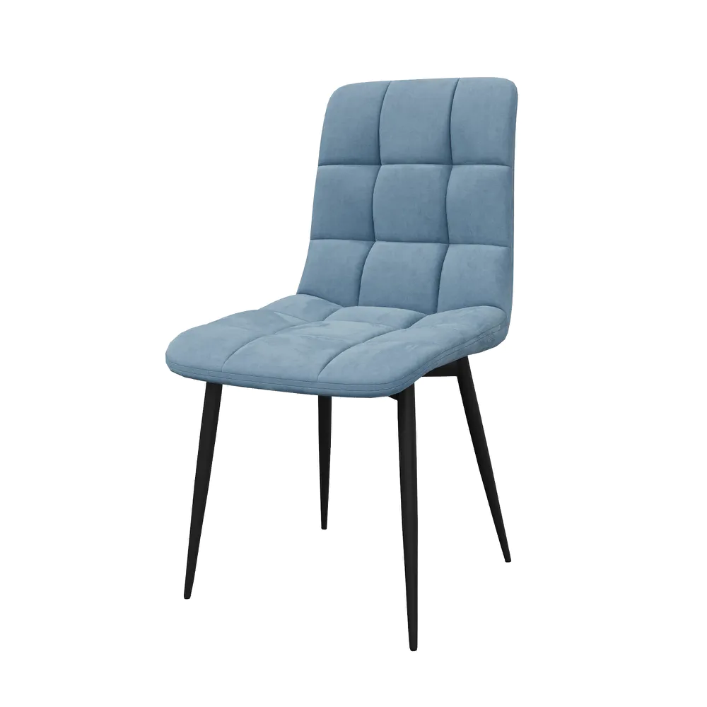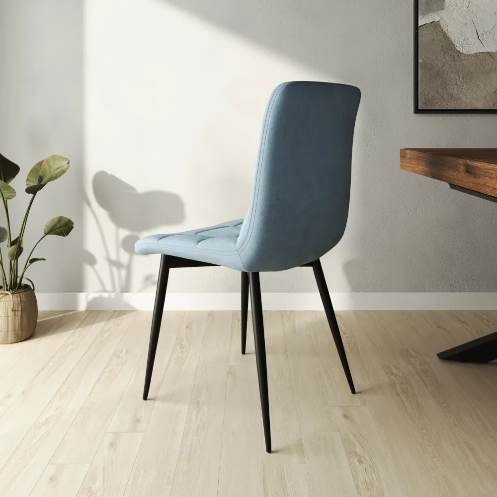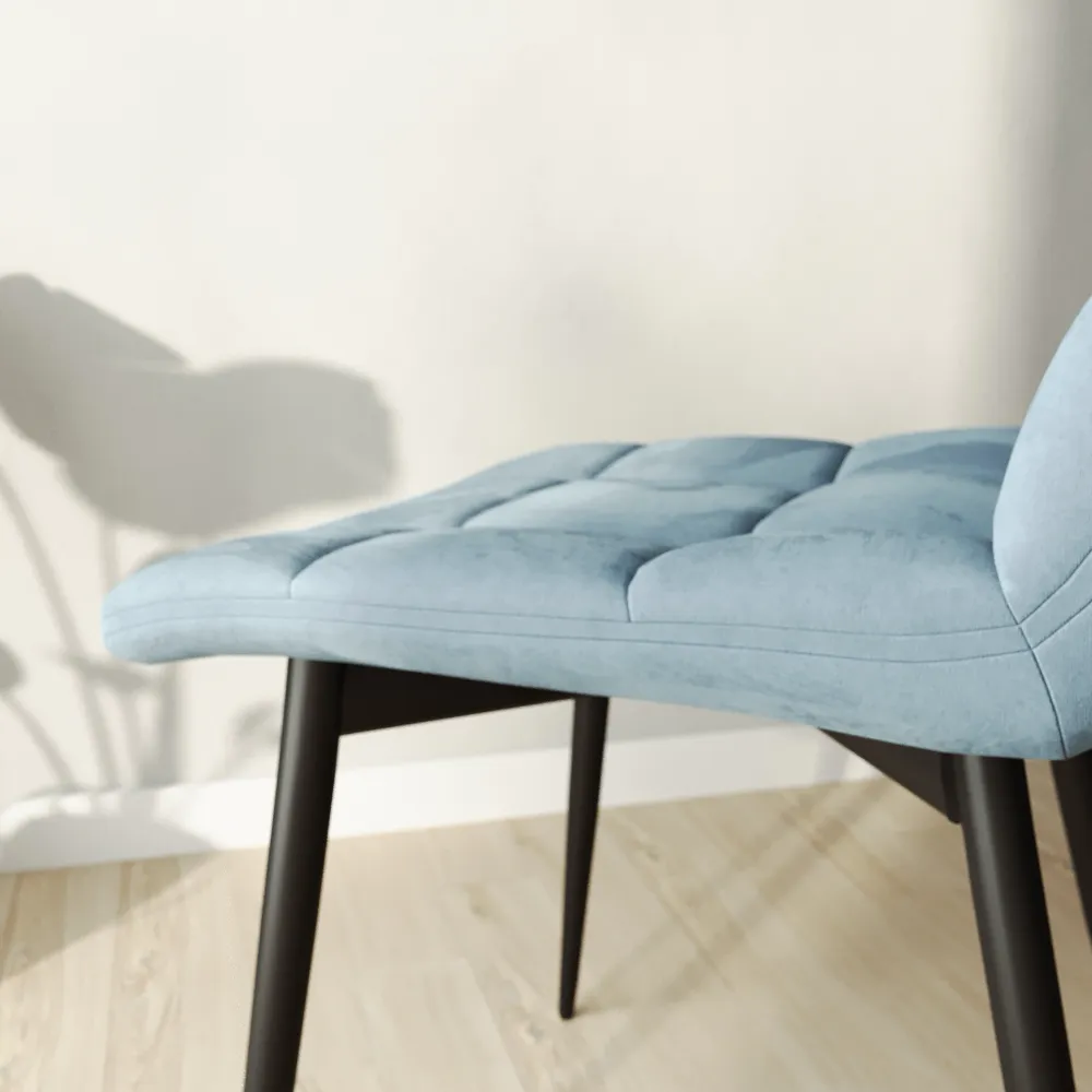 Set 4 sedie seduta in velluto azzurra trapuntata e gambe in acciaio nero | Asia