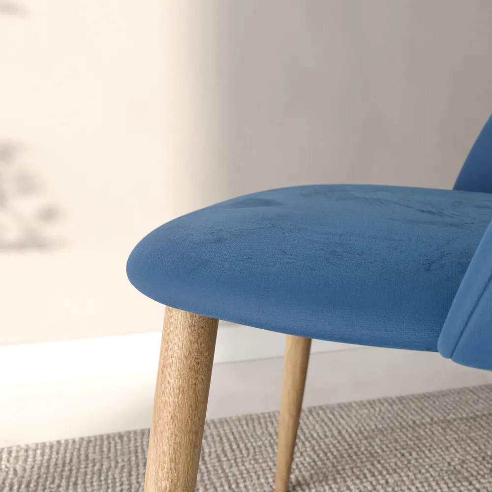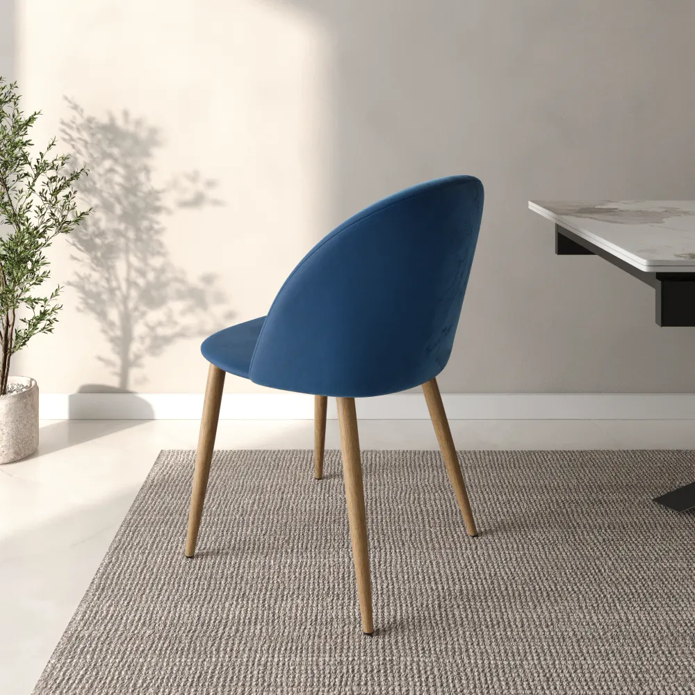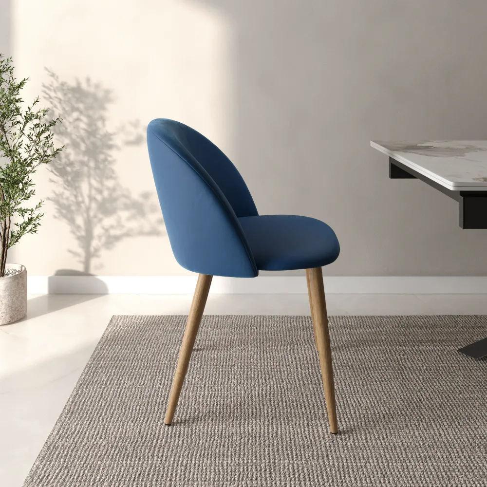Ti presentiamo il set di quattro sedie modello Anita, pensato per chi ama le linee morbide e un comfort che ti abbraccia. Il design si distingue per lo schienale curvo e accogliente, creando una seduta avvolgente e perfetta per il relax. Il rivestimento in morbido e resistente velluto blu dona un aspetto moderno e si adatta con facilità a ogni stile di arredamento.