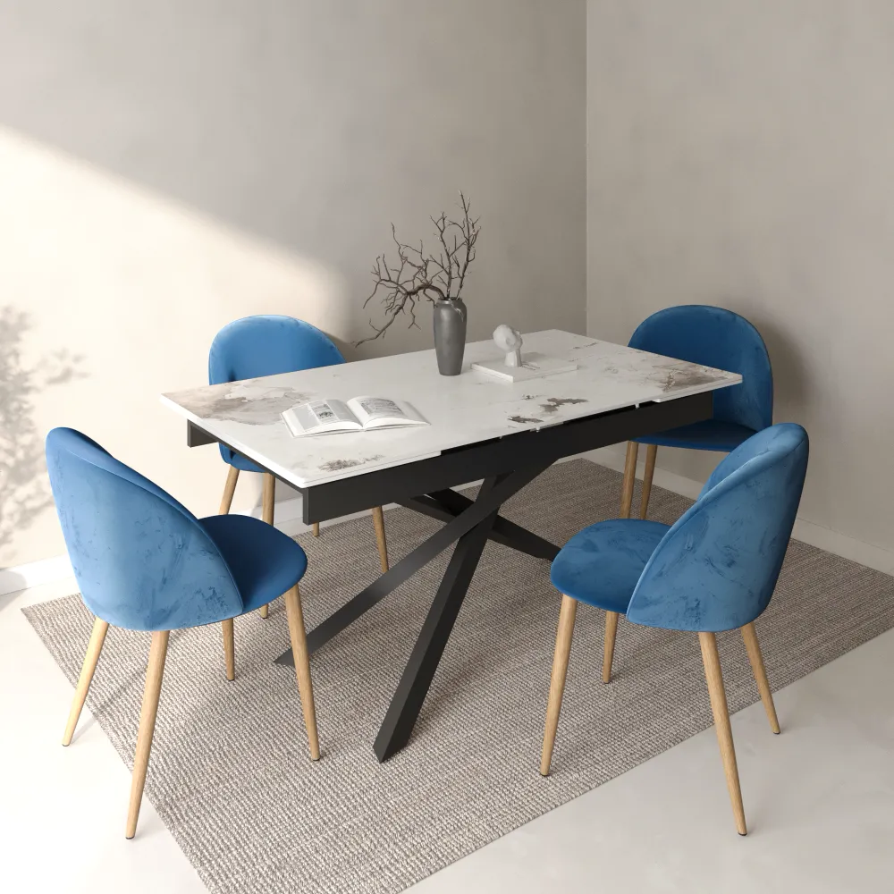 Set 4 sedie seduta in velluto blu con gambe in acciaio | Anita