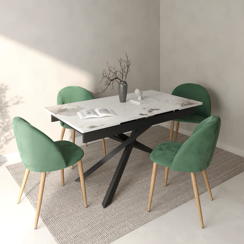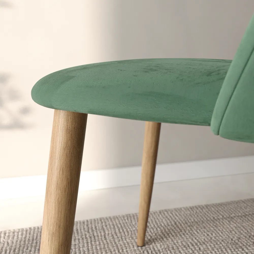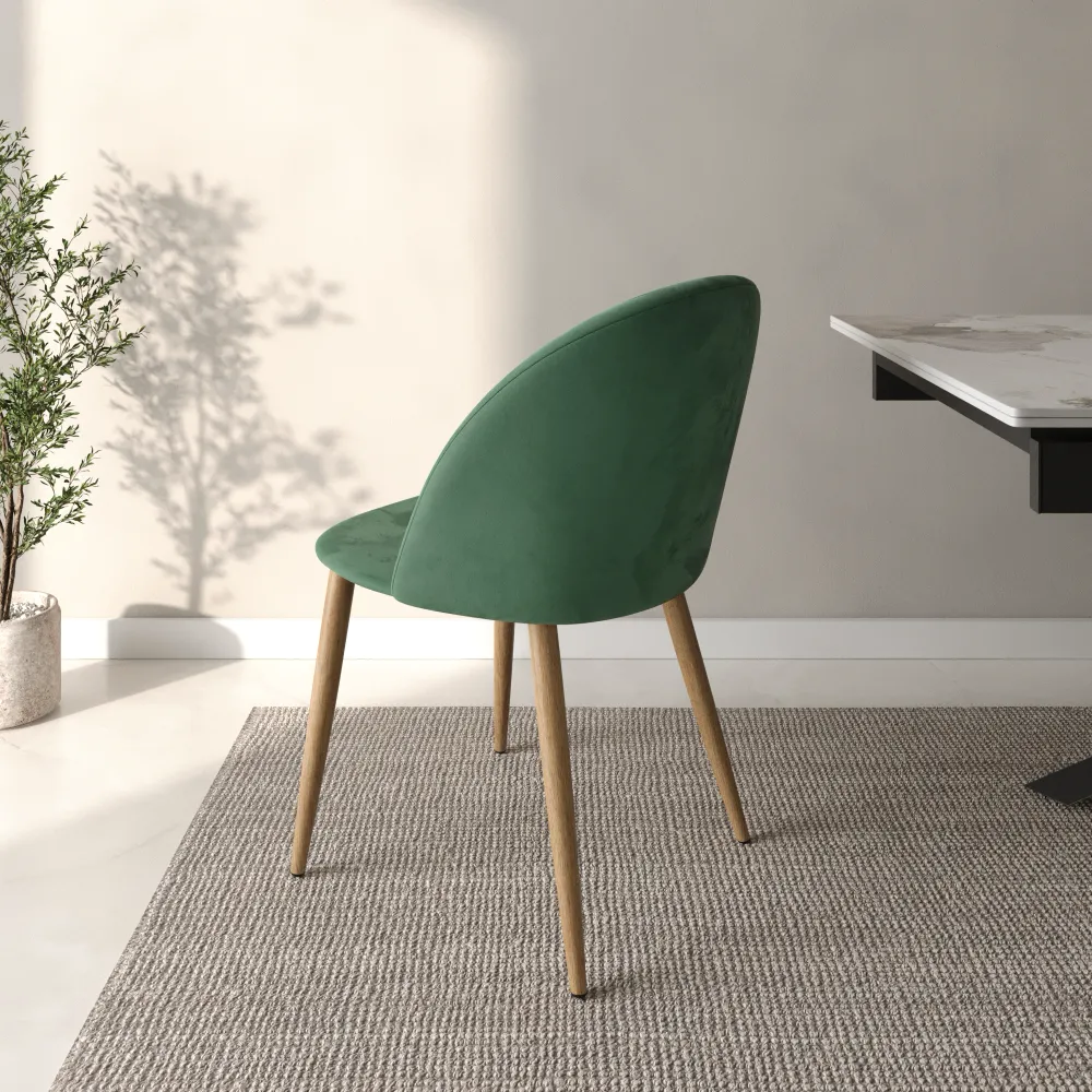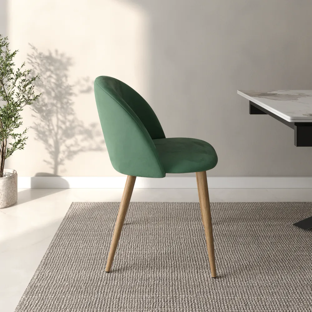 Ti presentiamo il set di quattro sedie modello Anita, pensato per chi ama le linee morbide e un comfort che ti abbraccia. Il design si distingue per lo schienale curvo e accogliente, creando una seduta avvolgente e perfetta per il relax. Il rivestimento in morbido e resistente velluto verde dona un aspetto moderno e si adatta con facilità a ogni stile di arredamento.