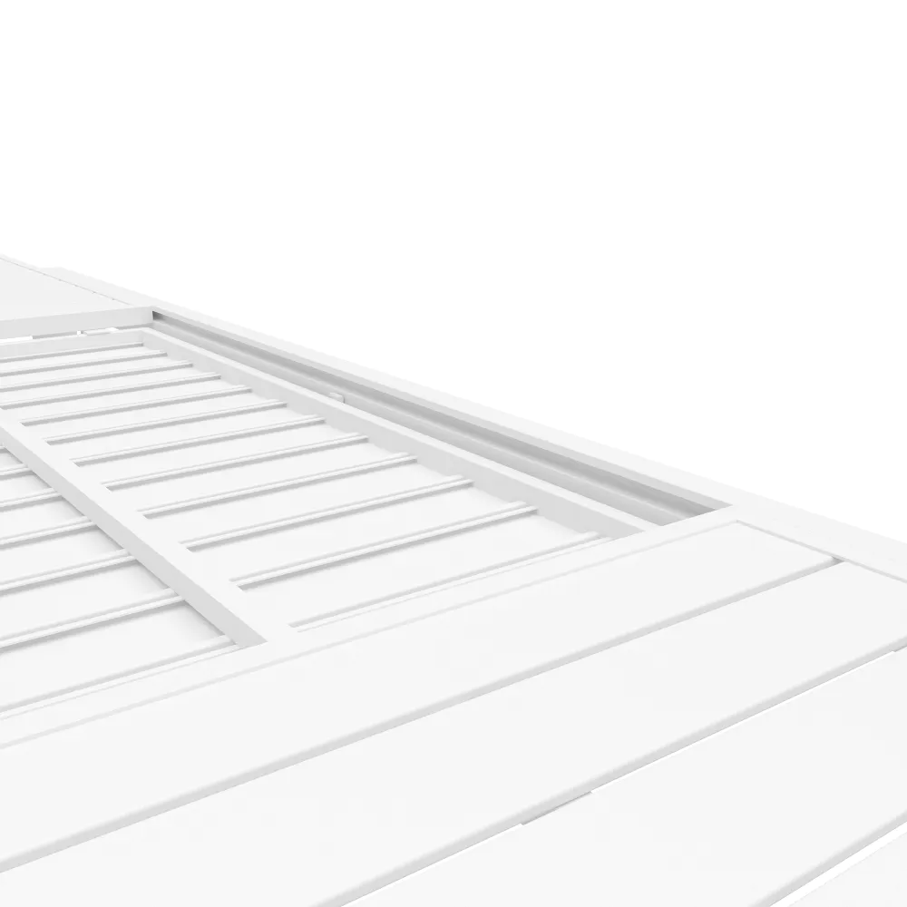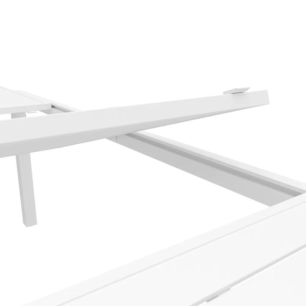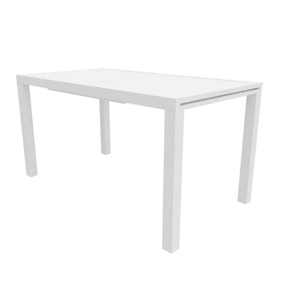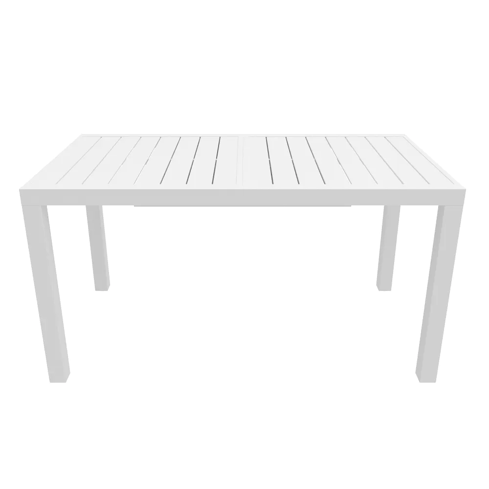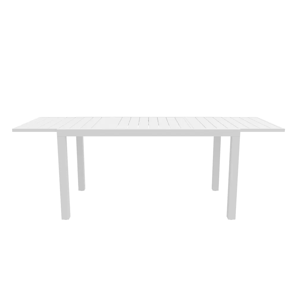 Unisci la praticità tecnica all'ergonomia con questo set da pranzo in alluminio bianco, progettato per chi vuole vivere l'esterno senza compromessi. Il protagonista è il tavolo allungabile Marel, un arredo intelligente che passa da 140 cm a 210 cm per accogliere fino a 8 persone. La trasformazione è resa semplice dal sistema di apertura a ribalta: con tre movimenti naturali — si apre, si gira e si unisce — le estremità scorrono e la prolunga integrata ruota per allinearsi al piano, offrendo solidità e spazio extra in pochi secondi.