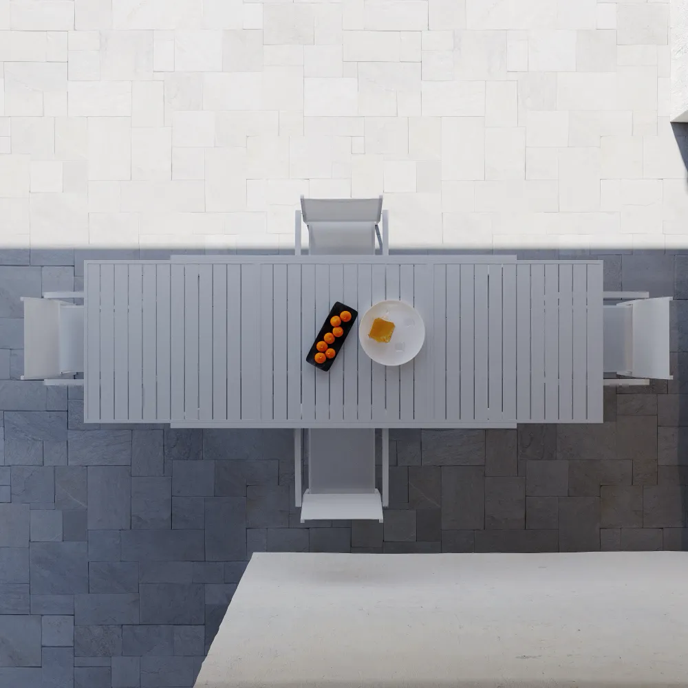 Trasforma il tuo giardino nel palcoscenico perfetto per le grandi occasioni con questo set da pranzo in alluminio bianco, capace di unire una capienza straordinaria al massimo comfort. Il protagonista assoluto è il tavolo allungabile Marel, che offre la libertà di passare da 200 cm a ben 300 cm di lunghezza, accogliendo comodamente fino a 12 ospiti. La trasformazione avviene senza sforzo grazie al sistema intuitivo: si apre, si gira e si unisce. Le estremità scorrono e la prolunga a ribalta si posiziona in un attimo, rendendo il tavolo pronto per la festa.