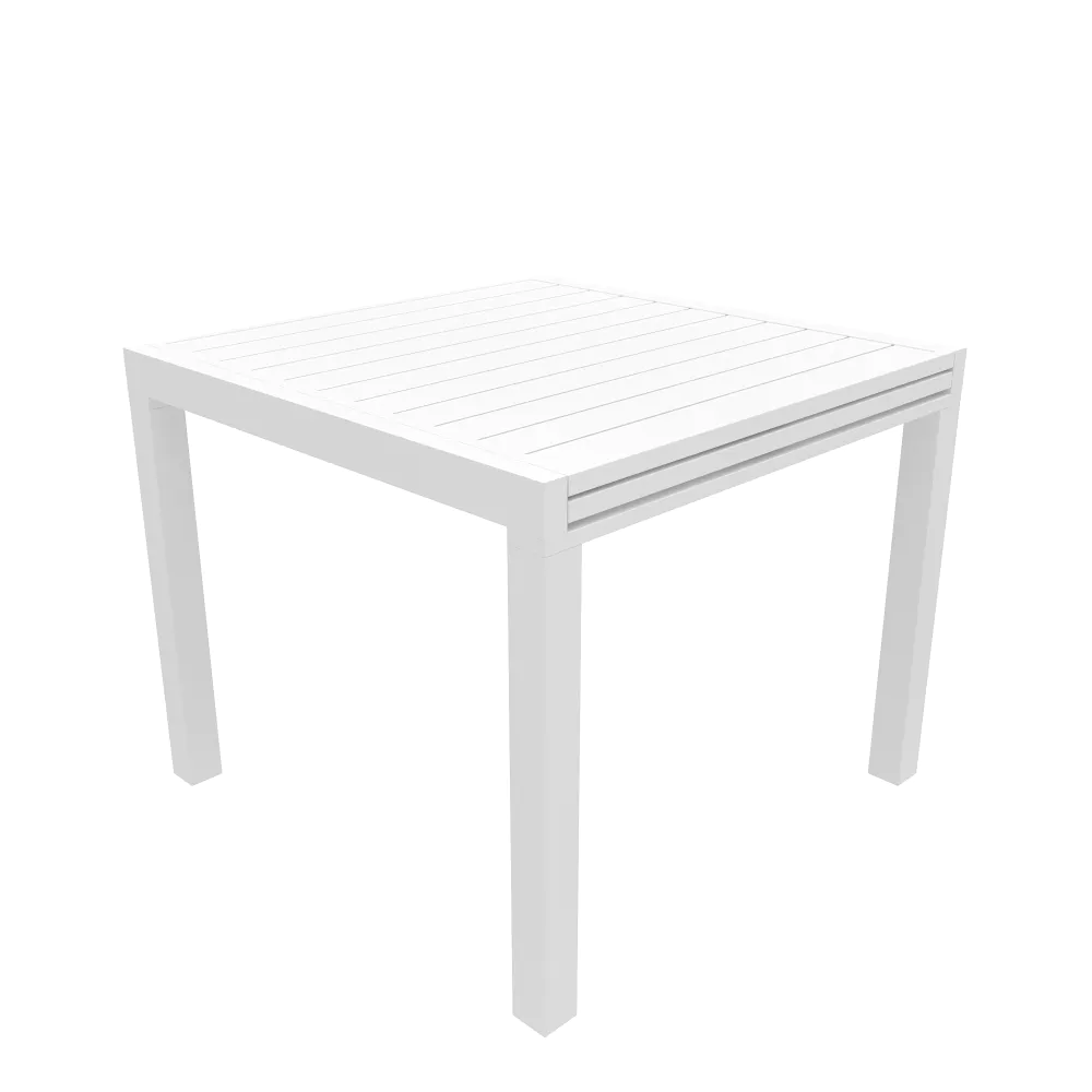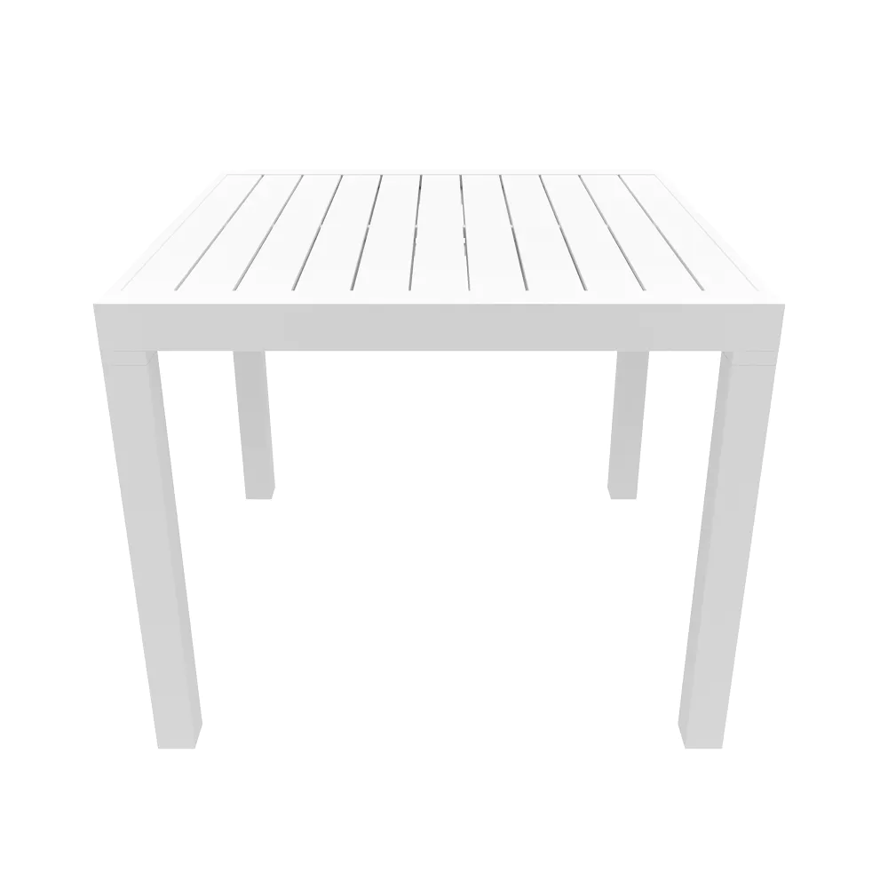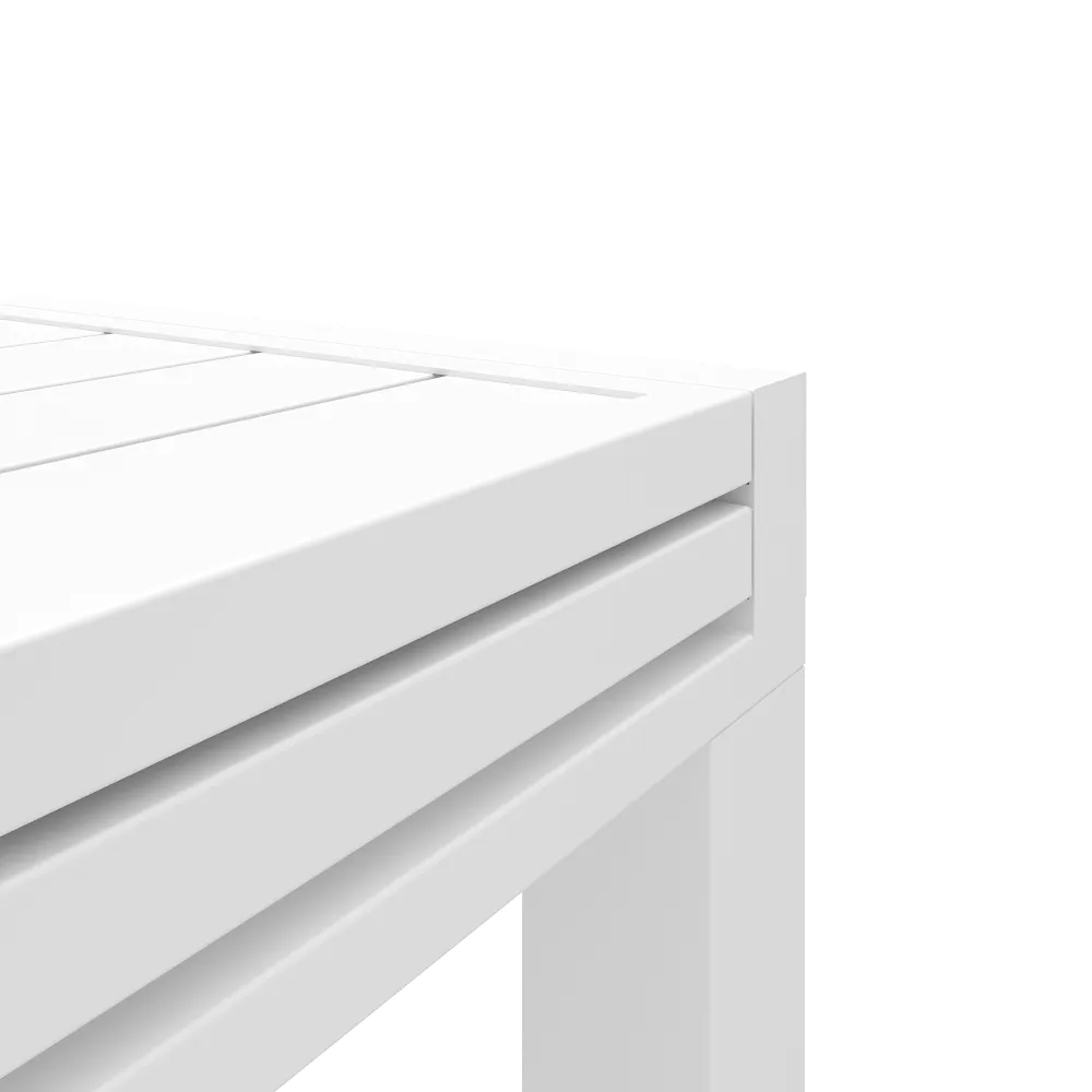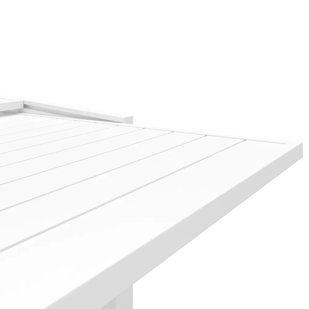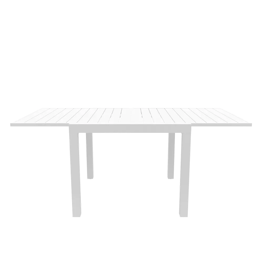 Realizzato interamente in alluminio verniciato a polvere, questo set resiste perfettamente a ruggine, raggi UV e intemperie, mantenendo inalterata la profondità del colore nel tempo. Il piano a doghe favorisce il drenaggio dell'acqua piovana, assicurando che il tavolo sia sempre pronto all'uso. Una scelta di carattere che unisce la praticità del formato salvaspazio alla robustezza dei materiali tecnici.